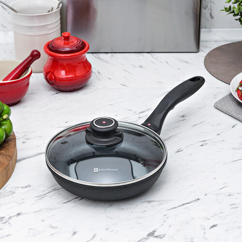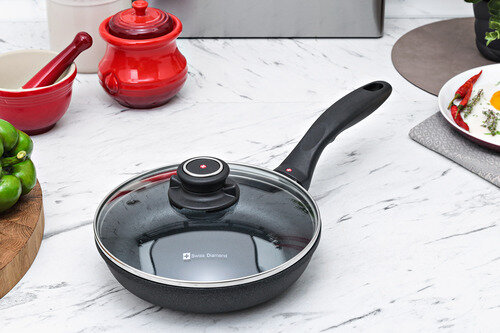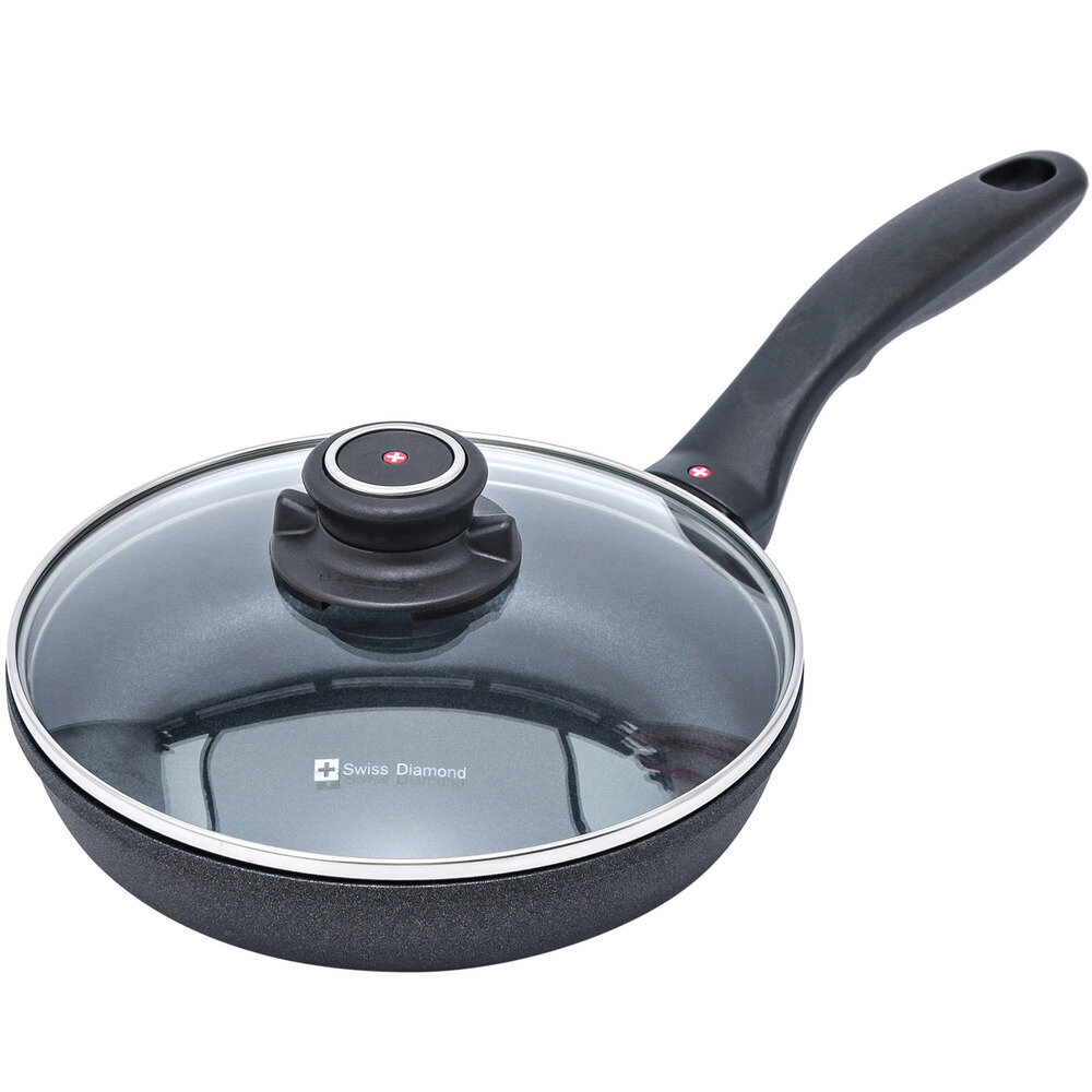 Алюминиевая сковорода c алмазным покрытием и стеклянной крышкой 20 см, Черная Swiss Diamond XD Classic+ Induction