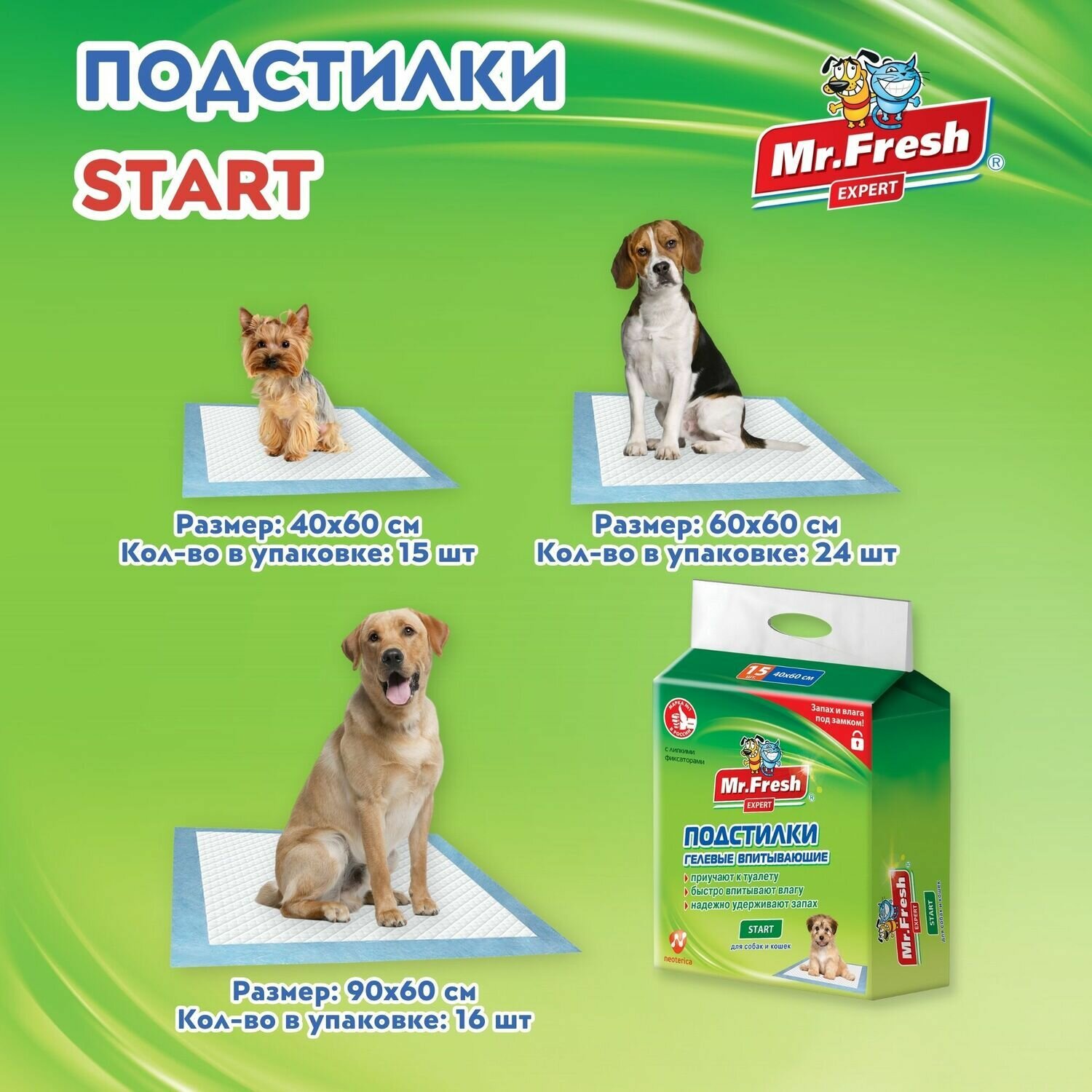 Подстилки-пеленки Mr.Fresh Expert Start, для приучения к туалету, для кошек и собак, 40 см*60 см (15 шт.)