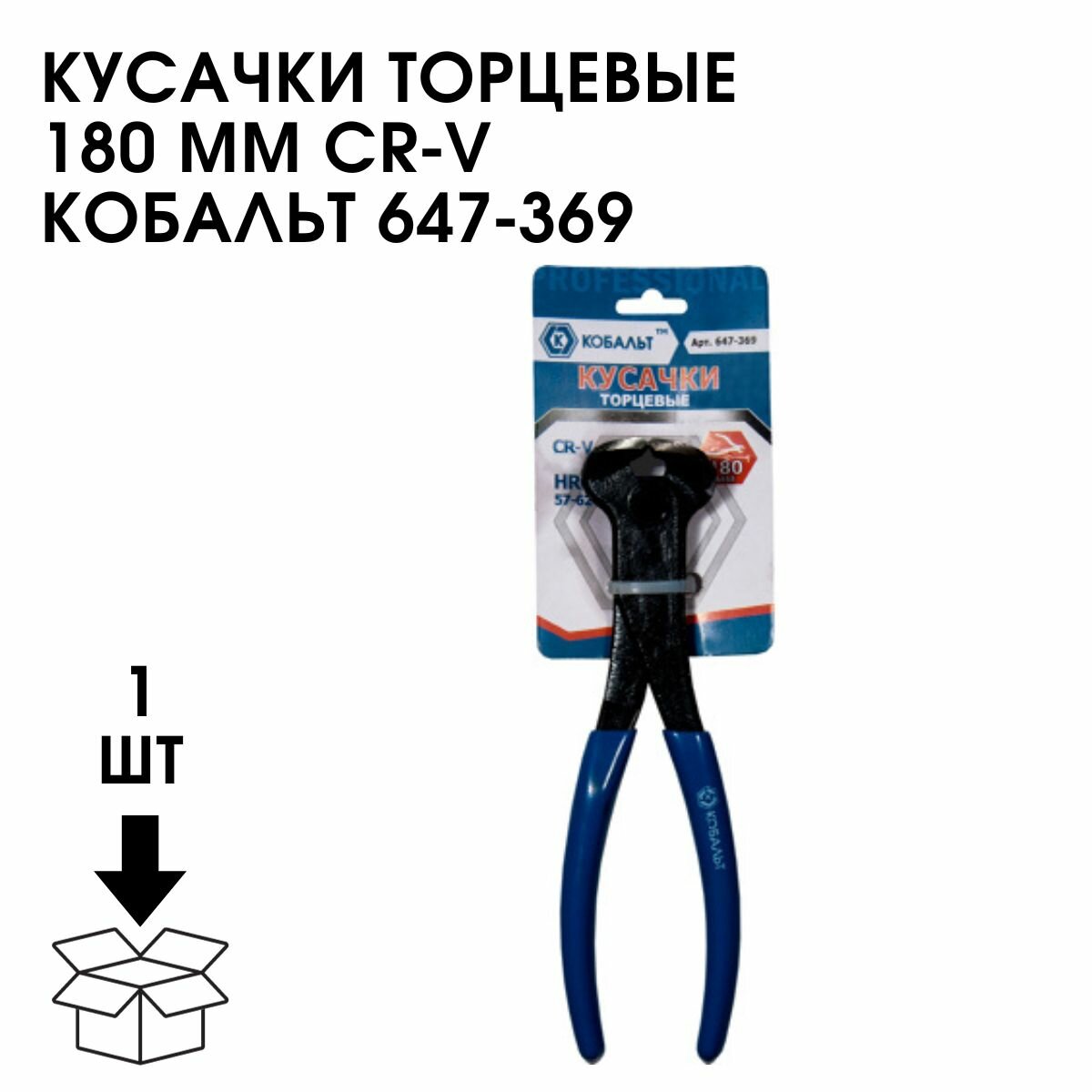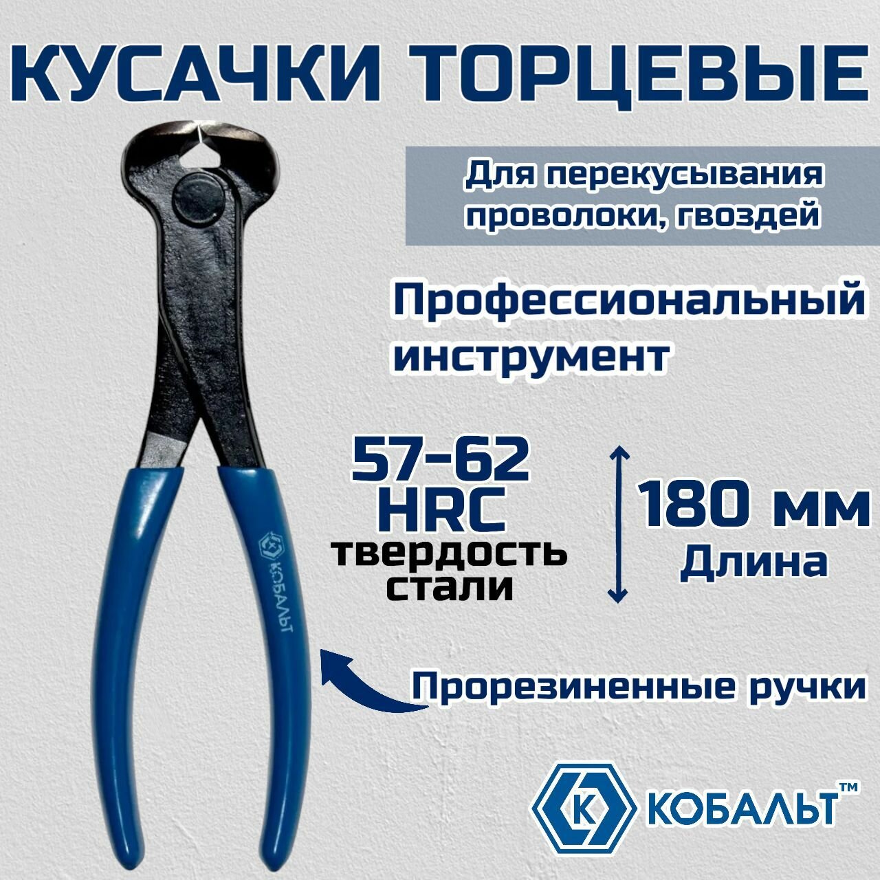 Кусачки торцевые кобальт 180 мм, CR-V (1 шт.) подвес (1 шт., подвес)