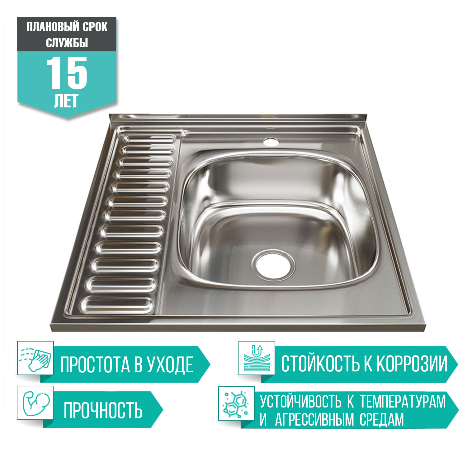 Накладная кухонная мойка Mixline из нержавеющей стали квадратная 60х60 см выпуск 3 1/2 глубина 18 см крыло левое