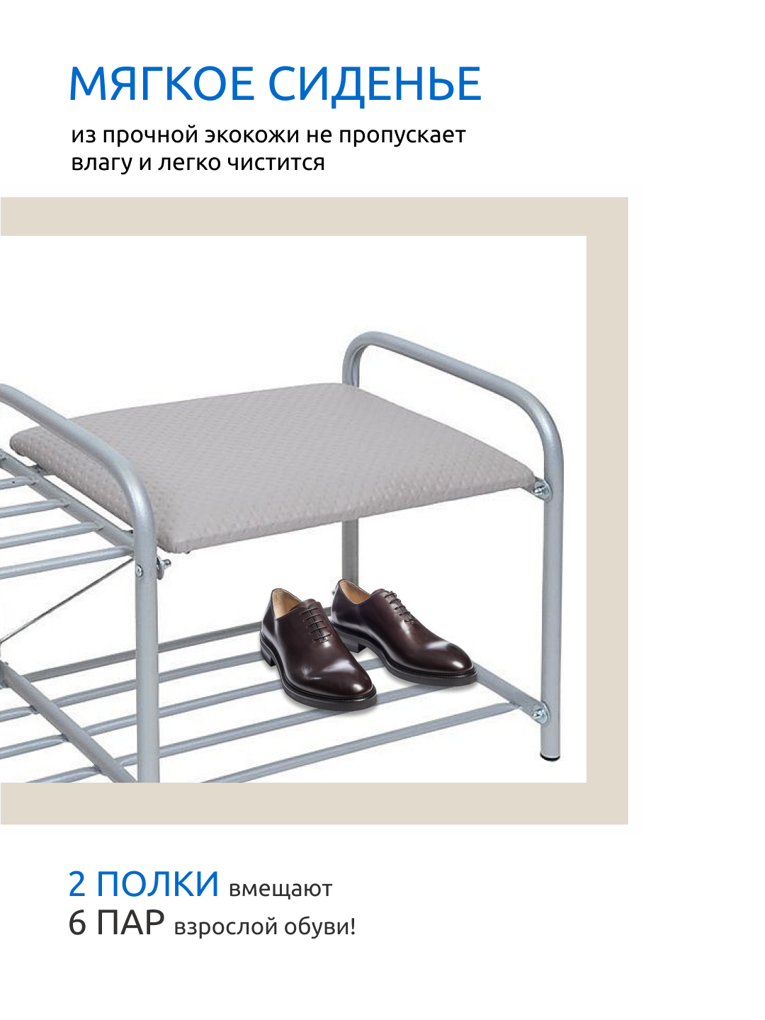 Этажерка для обуви Люкс 2-х ярусная с сиденьем из винилискожи серый