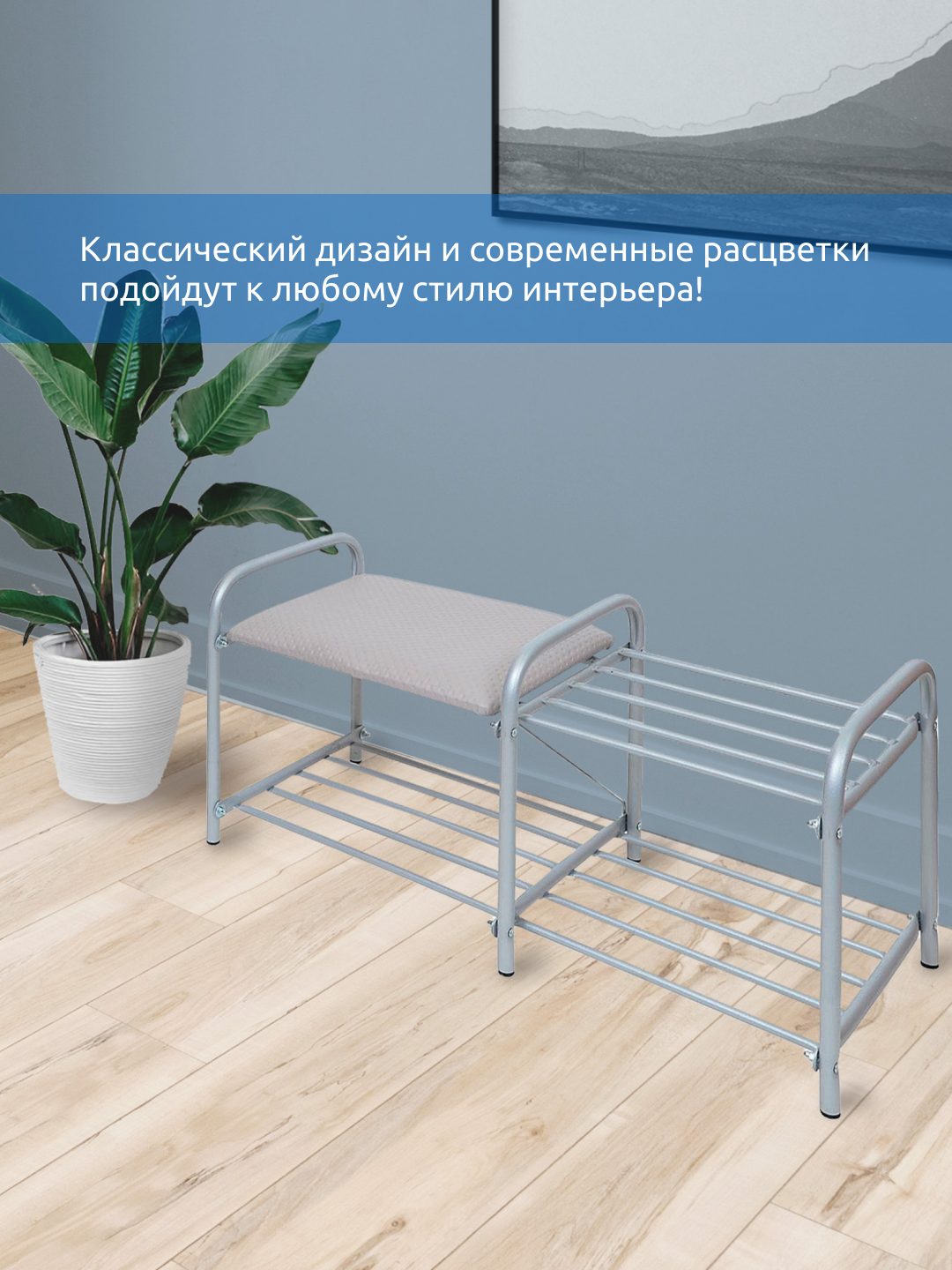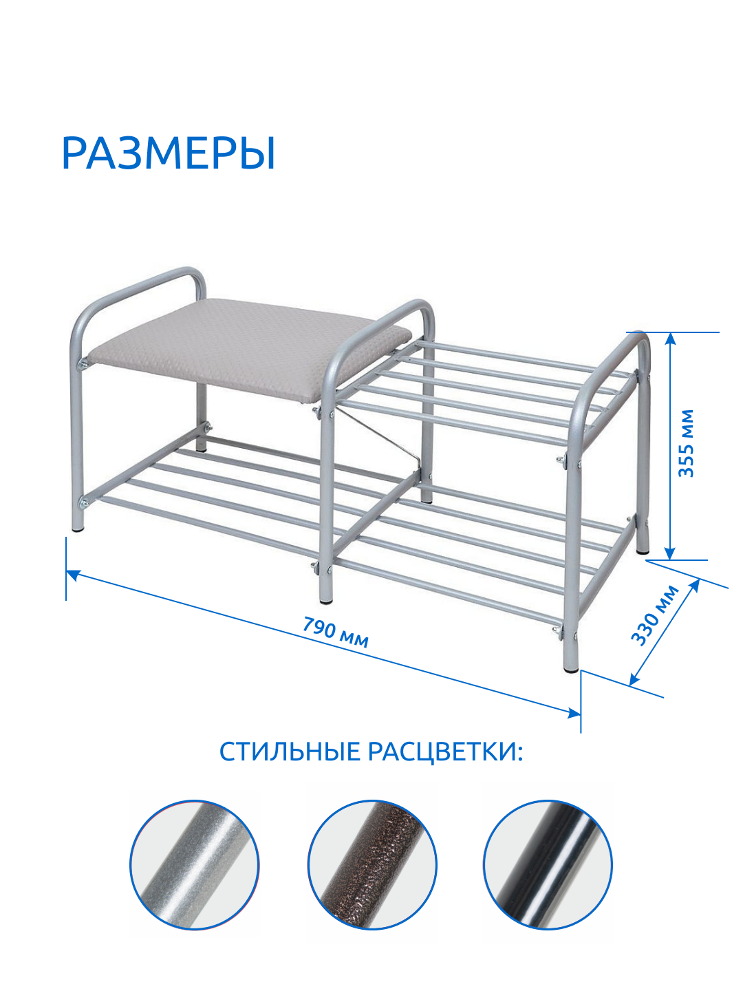 Этажерка для обуви/ обувница в прихожуюНика "Люкс" ЭТЛ1/С (подставка с двумя полками, с сиденьем, металл,79х33х36, Grey)