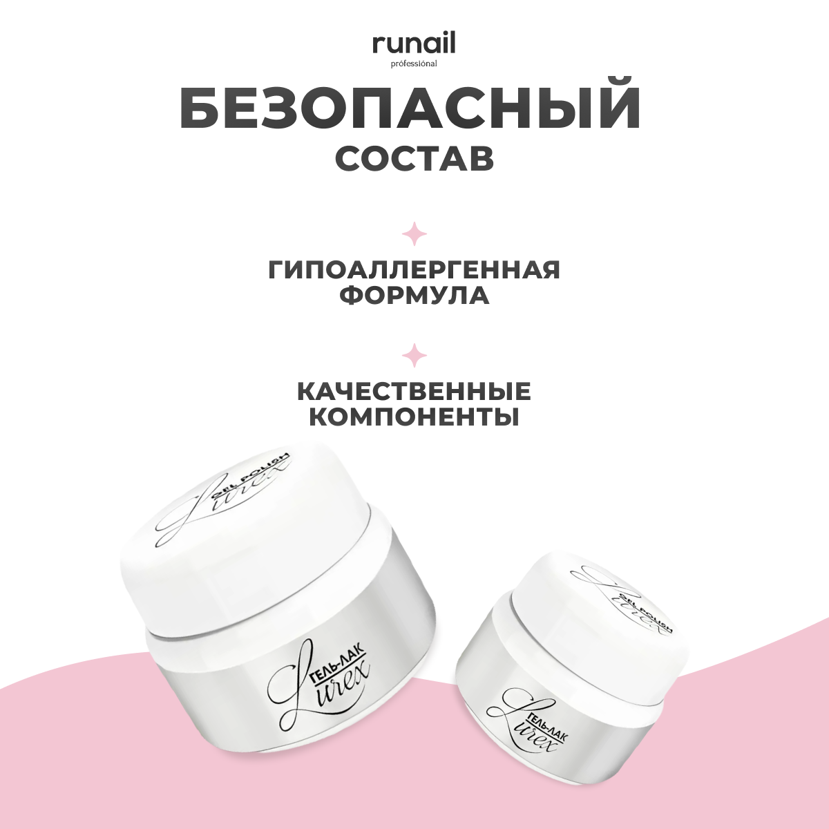 Runail Professional гель лак для ногтей Lurex (цвет: платина) 5 г / Рунейл гель краска для маникюра 3753