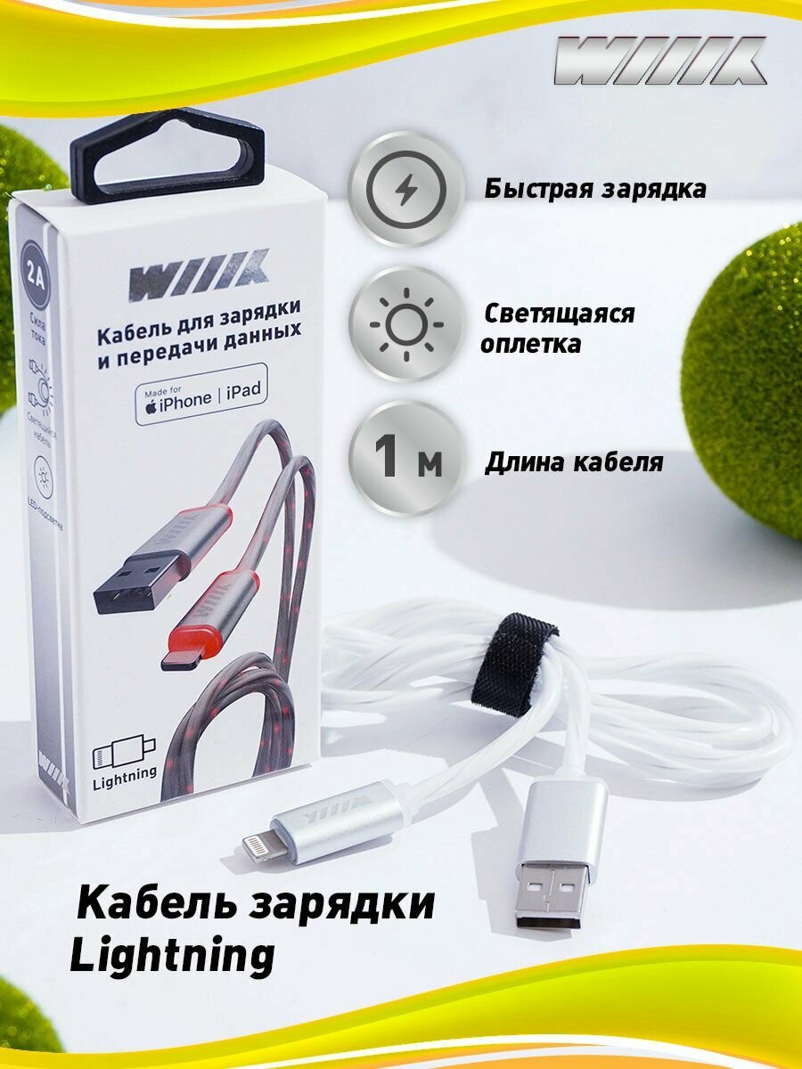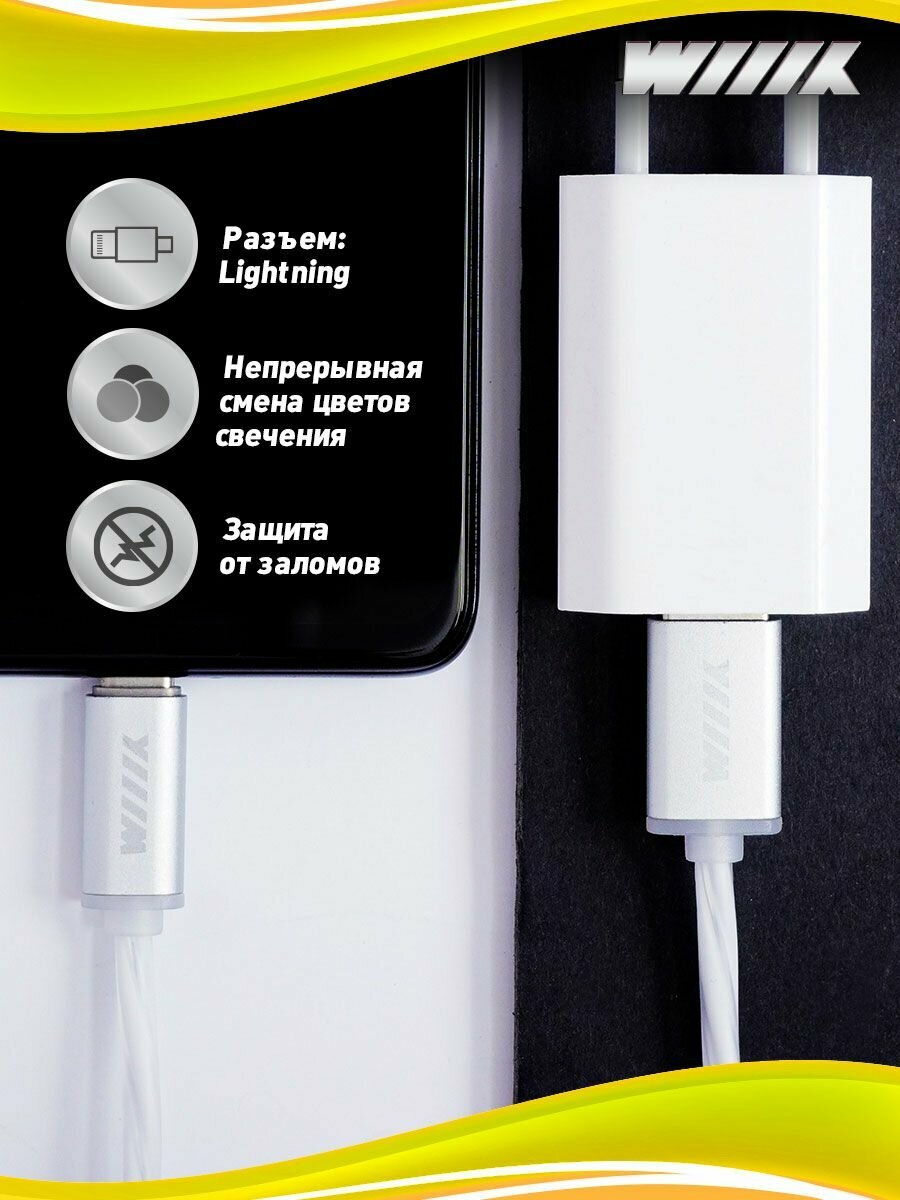 Кабель Светящийся Wiiix Usb - 8Pin Белый 1M, Арт. Cbl710-U8-10W WIIIX арт. CBL710-U8-10W