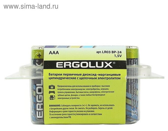 Ergolux Батарейка LR03 Alkaline BP-24 LR03 BP-24, батарейка,1.5В 24 шт. в уп-ке