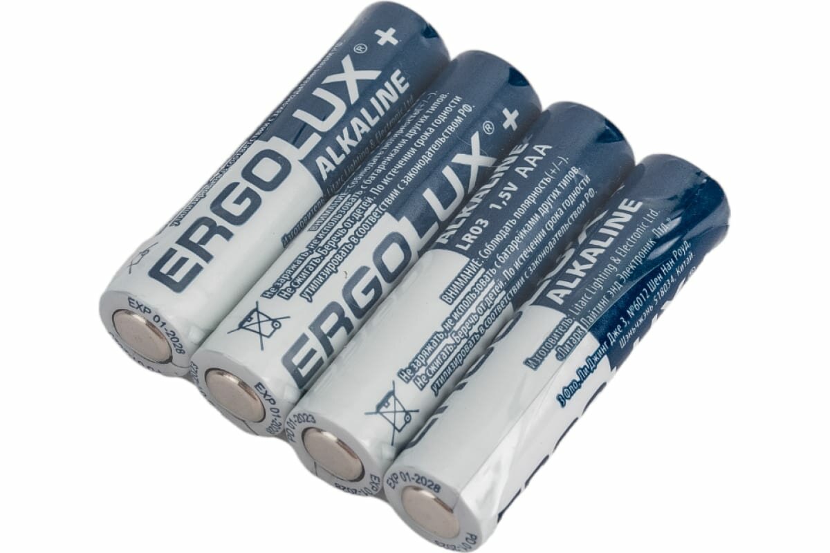Батарейки щелочные Ergolux - тип AAA, 1.5В, 4 шт. в упаковке