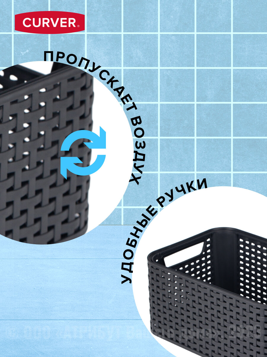 Коробка/корзина для хранения с ручками 6 л, CURVER RATTAN STYLE BOX S, пластик,тёмно-серая