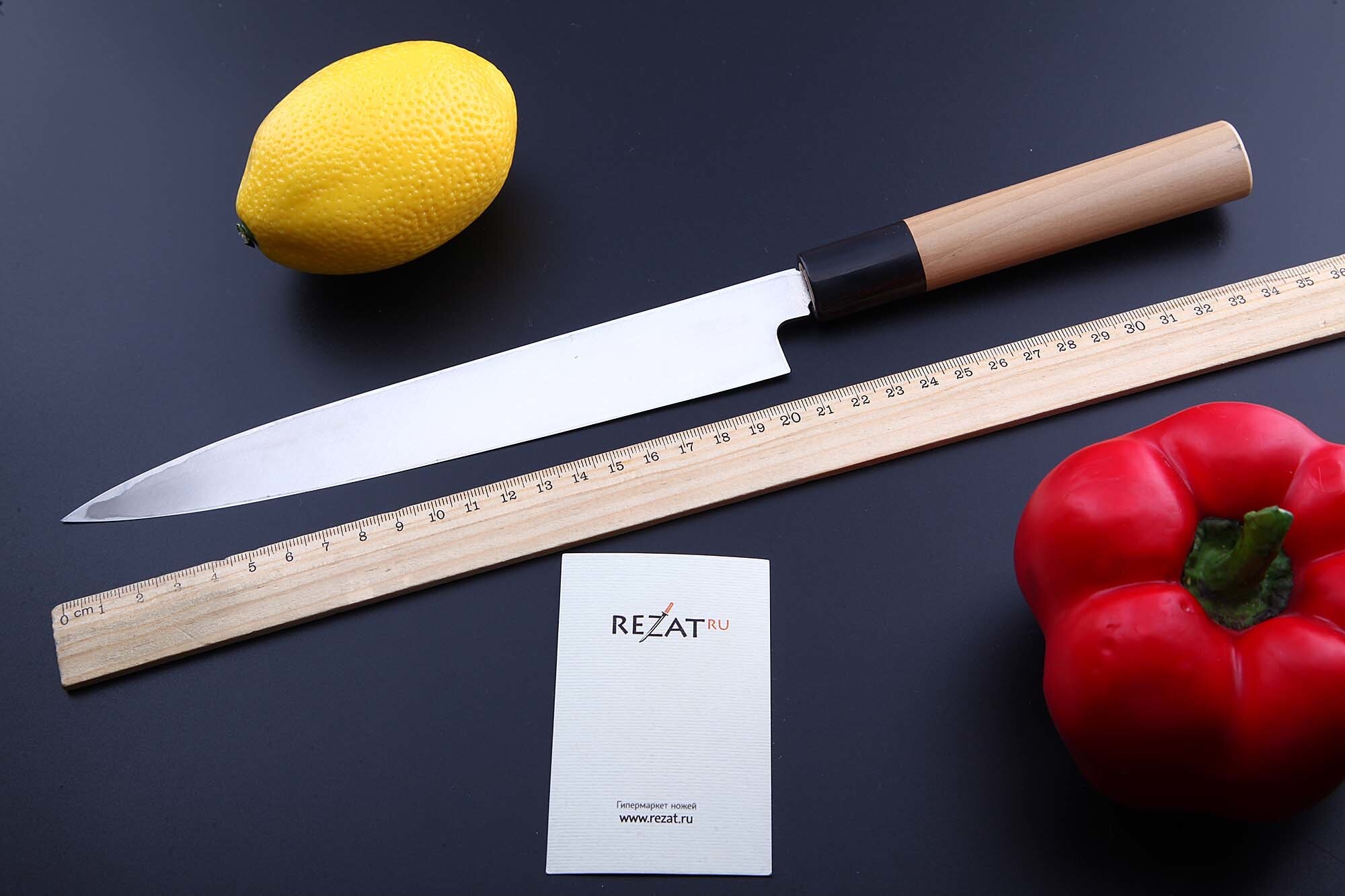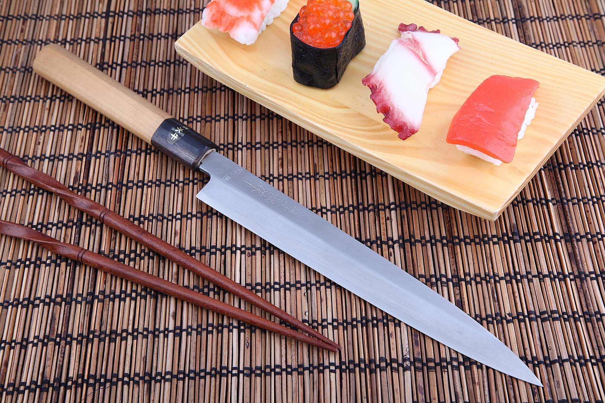 Нож Янагиба Tojiro F-946 с циновкой для суши интересное: