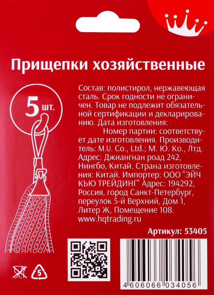 Прищепки хозяйственные HOMEQUEEN 13,5х10х1см Арт. 53405, 5шт интересное: