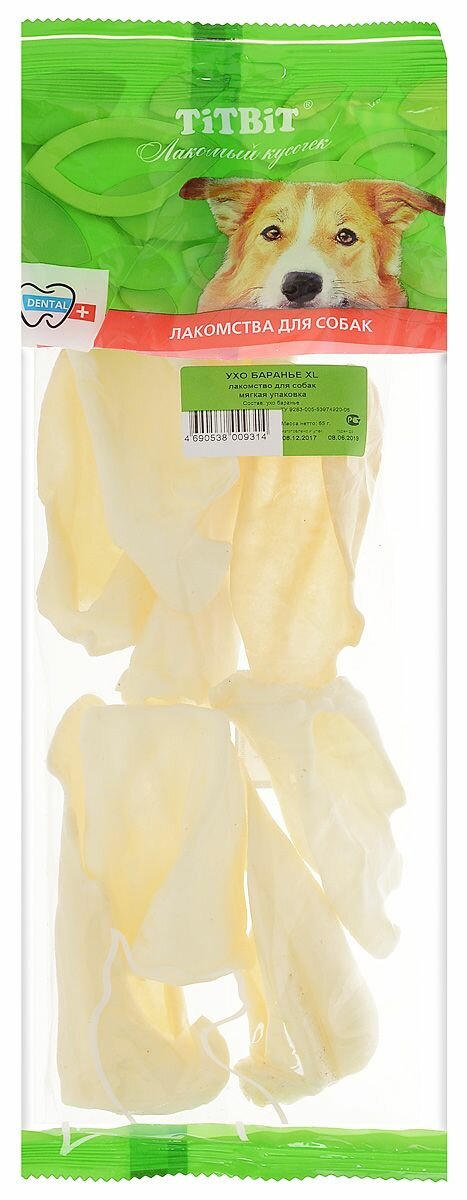 TiTBiT Ухо баранье XL (мягкая упаковка) 3722009314 , 0,065 кг