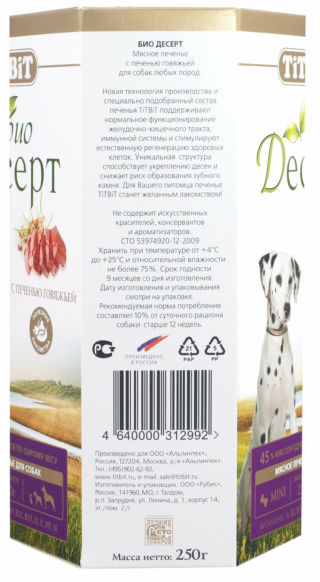 Титбит 2992 Лакомство д/собак Печенье с печенью говяжьей мини 250г