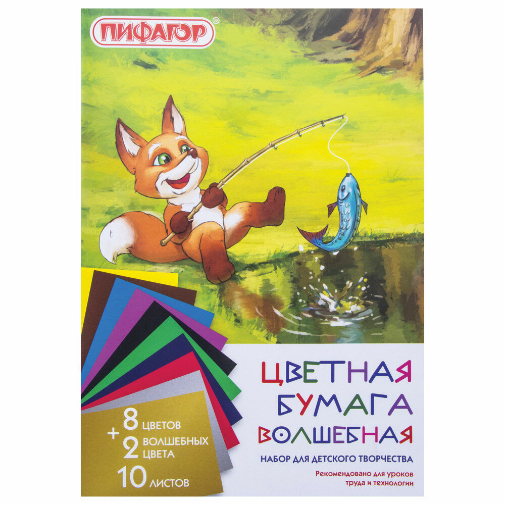 Купить Цветная бумага А4 газетная волшебная 10 листов 10 цветов на скобе пифагор 200х280 мм "Лисенок" 128000 3 шт