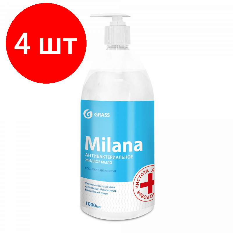 СохранитьКомплект 4 штук, Мыло жидкое ПРОФ антибакт. Grass/MILANA Антибактериальное,1л_доз интересное: