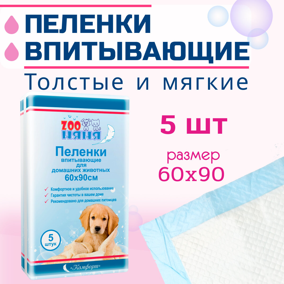 Купить Пеленки впитывающие для животных ZOO няня Комфорт одноразовые гигиенические 60х90 5шт