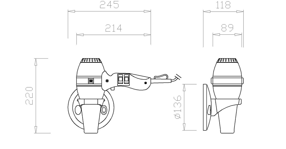 Фен настенный Nofer Hotel Line 02057.B Черный Металлик