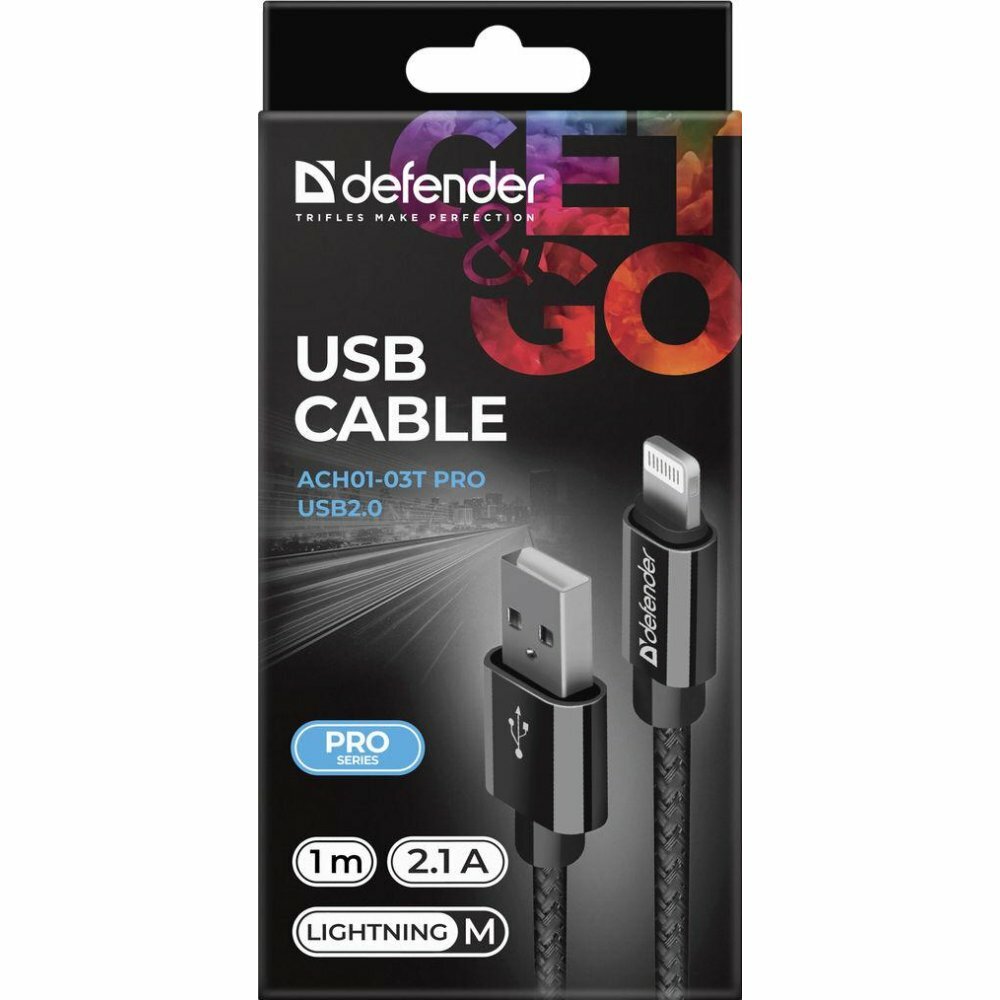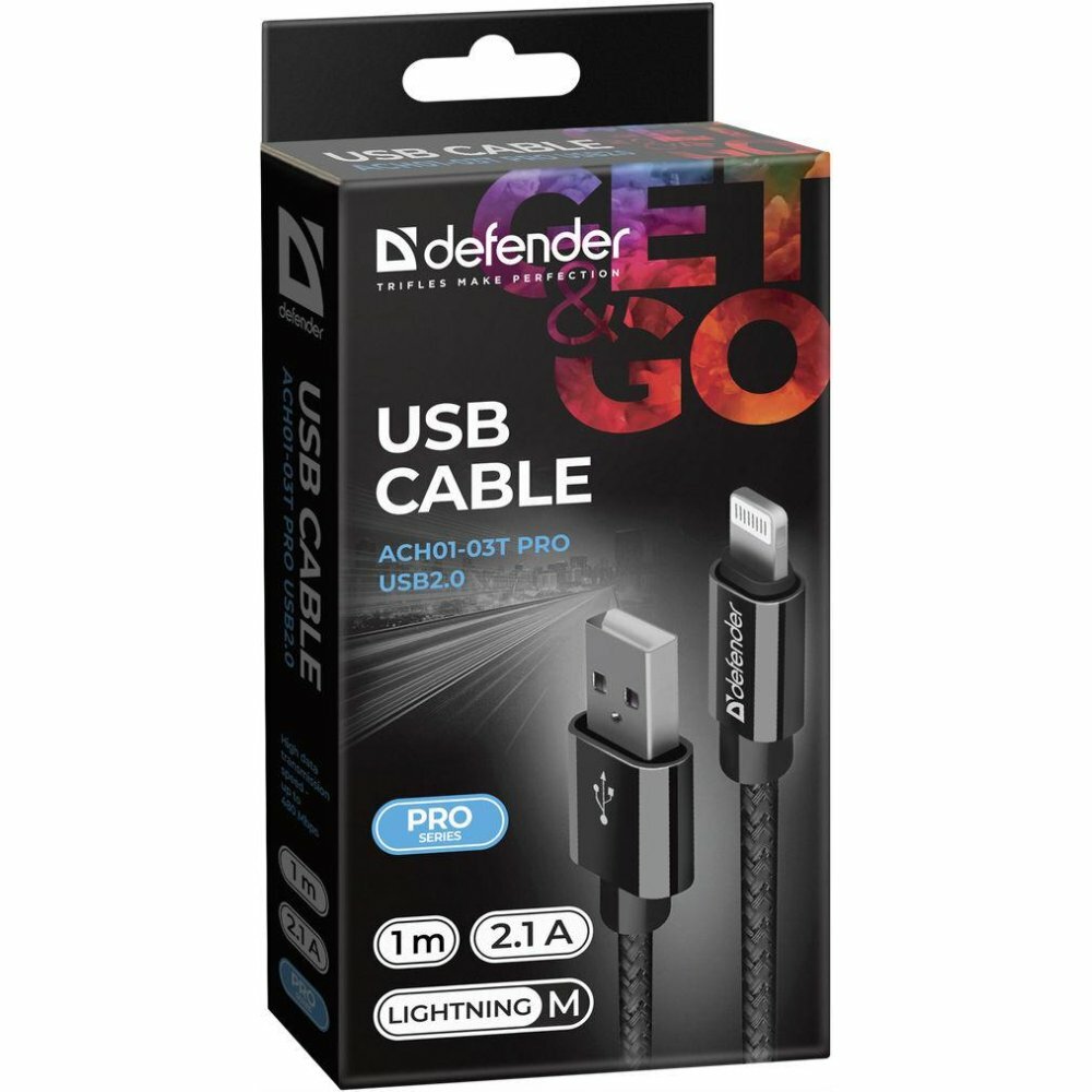Купить Кабель Defender LIGHTNING TO USB2 1M BLACK ACH01-03T
