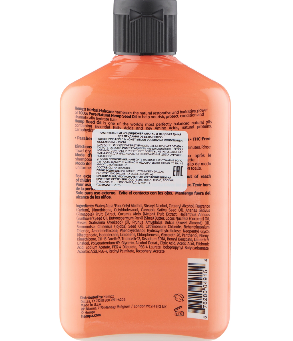 HEMPZ Растительный кондиционер Ананас и Медовая Дыня для придания объёма 250мл