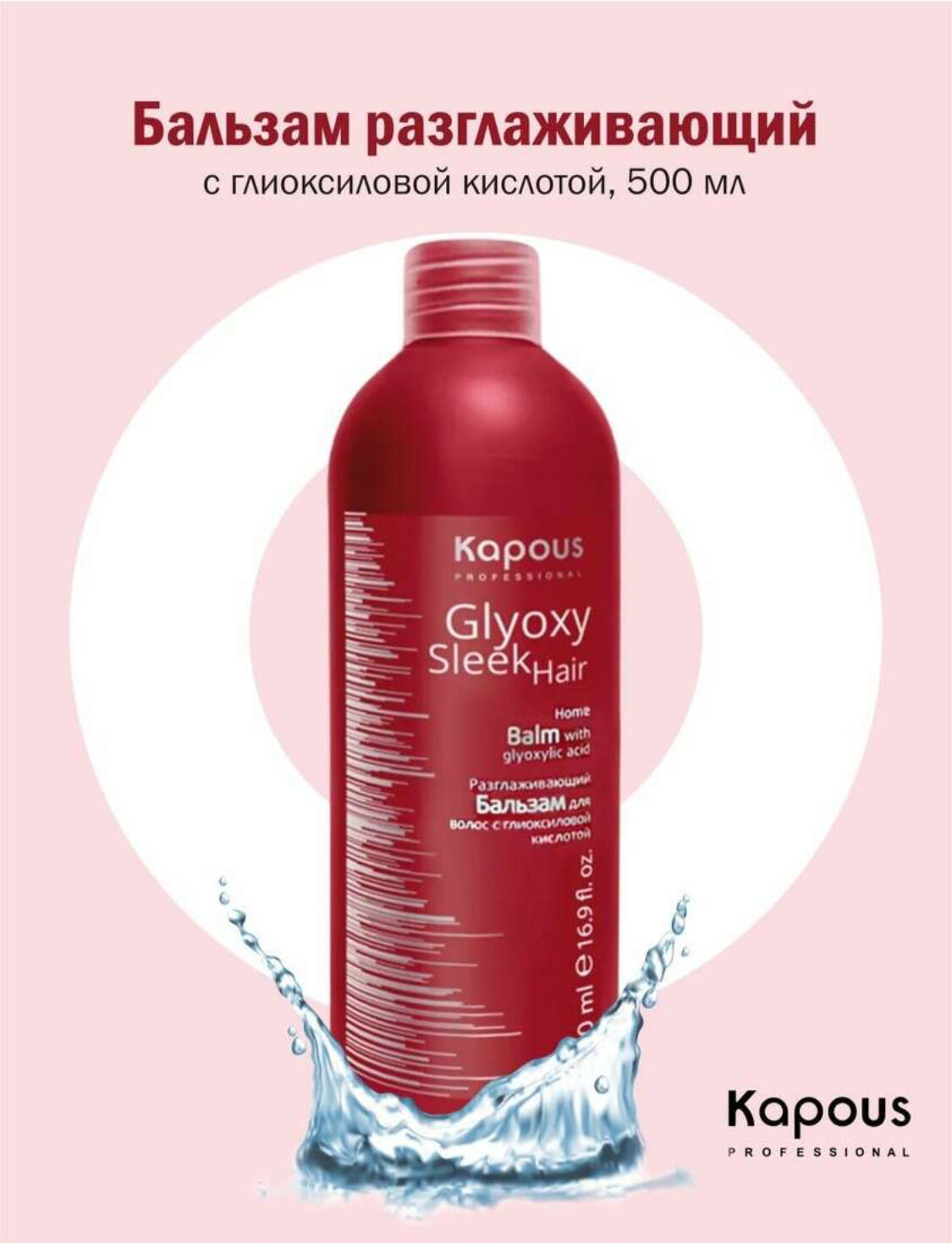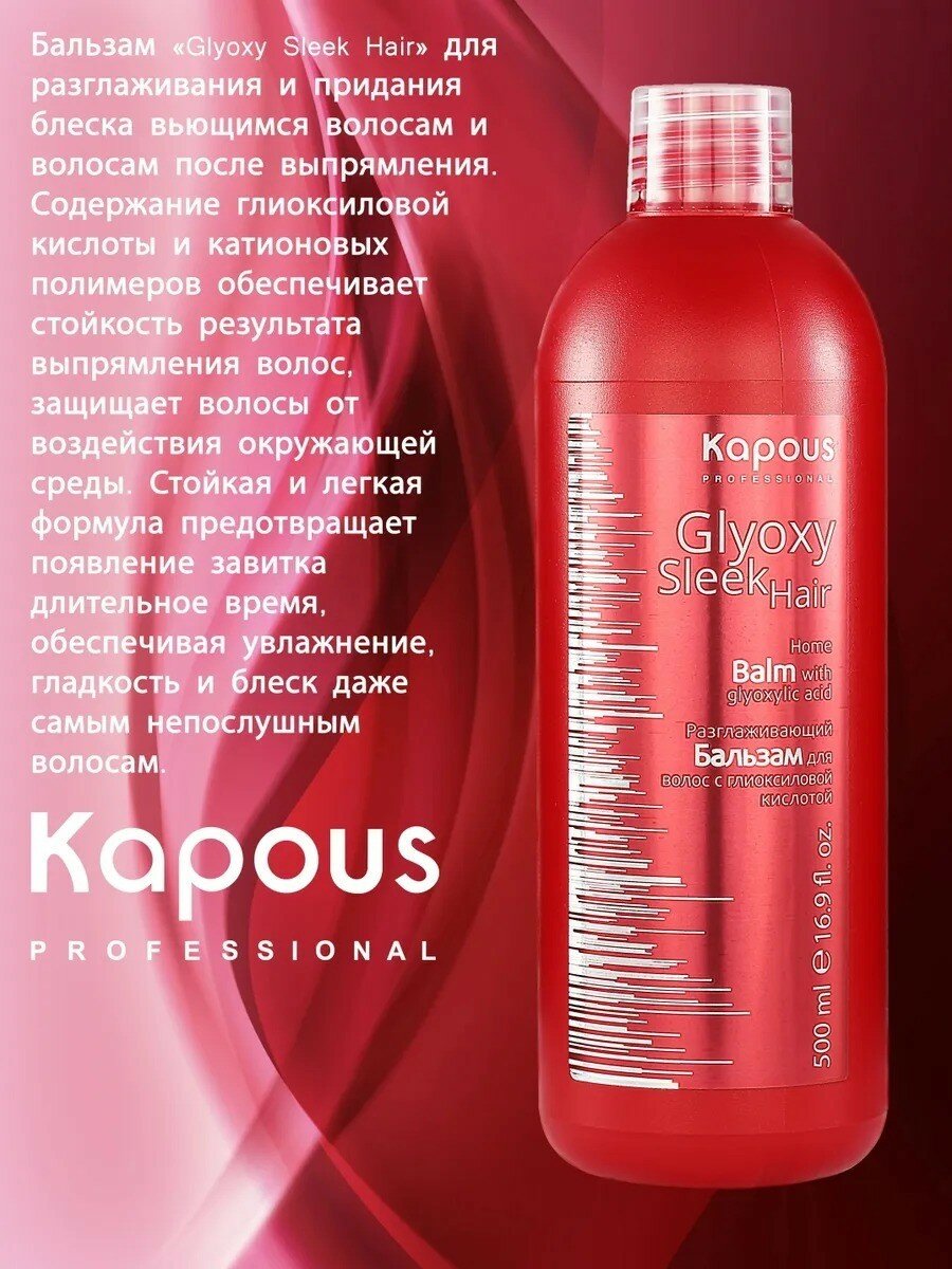 Разглаживающий бальзам для волос KAPOUS PROFESSIONAL GlyoxySleek Hair с глиоксиловой кислотой, 500 мл