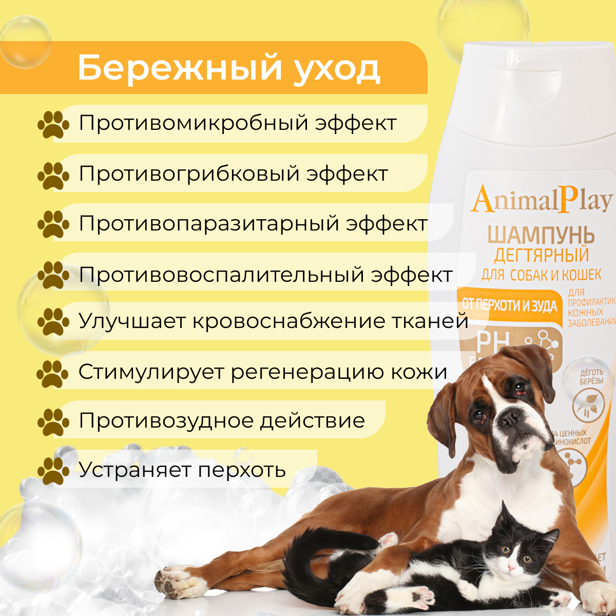 Дегтярный шампунь для собак и кошек Animal Play, 250 мл