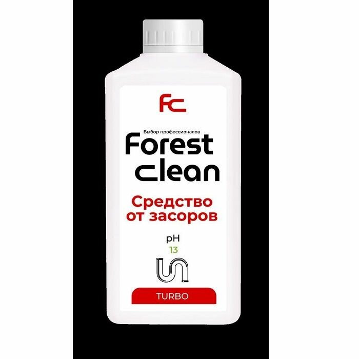 Средство от засоров труб, средство для прочистки труб от засоров, Forest clean TURBO, биоразлагаемое, 1л