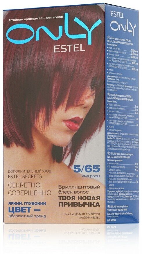Ниже Вы можете прочитать отзывы на Юникосметик Краска-гель Estel Only 5.65 Светлый шатен фиолетово-красный 145 мл, ознакомится с подробными характеристиками, посмотреть интересные обзоры и фотографии на Юникосметик Краска-гель Estel Only 5.65 Светлый шатен фиолетово-красный 145 мл.
