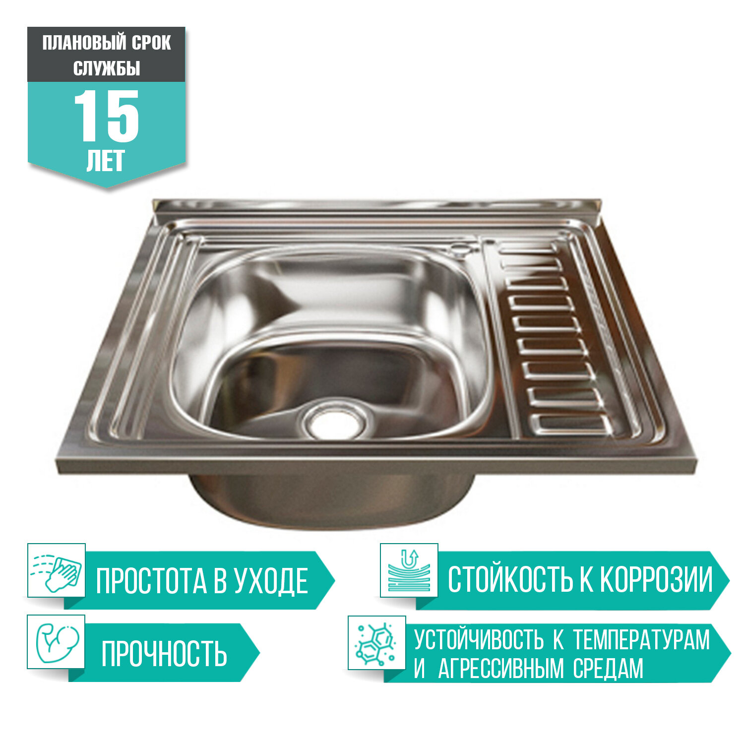 Кухонная мойка Mixline Накладная 60x50 с сифоном, нержавеющая сталь 0,8 мм (4640030862443) интересное: