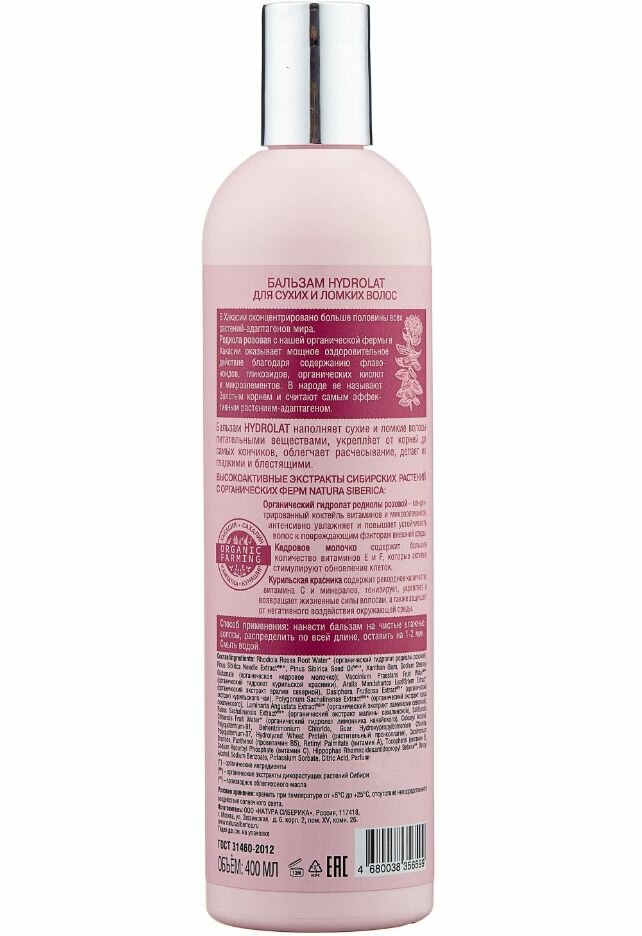 Бальзам Natura Siberica Hydrolat, для сухих и ломких волос, 400 мл .