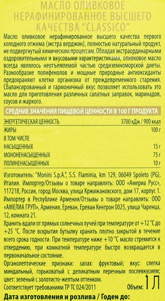 Ниже Вы можете прочитать отзывы на Масло оливковое Monini Classico Extra Virgin нерафинированное высшего сорта первого холодного отжима Экстра Вирджин, 1л, ознакомится с подробными характеристиками, посмотреть интересные обзоры и фотографии на Масло оливковое Monini Classico Extra Virgin нерафинированное высшего сорта первого холодного отжима Экстра Вирджин, 1л.