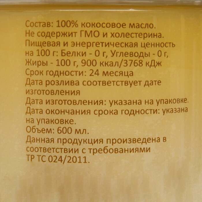 | Вид масла | кокосовое |