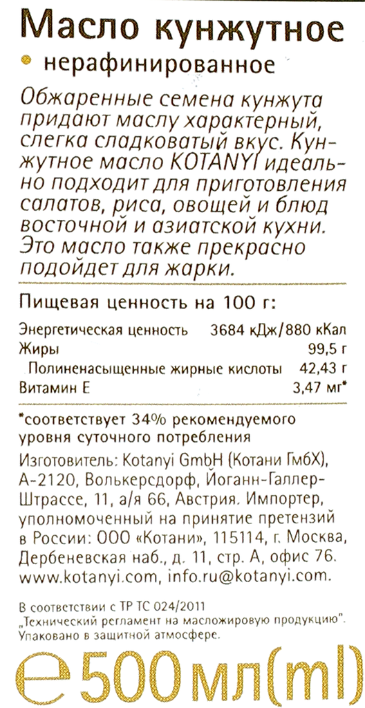 Масло Кунжутное KOTANYI Gourmet 500мл