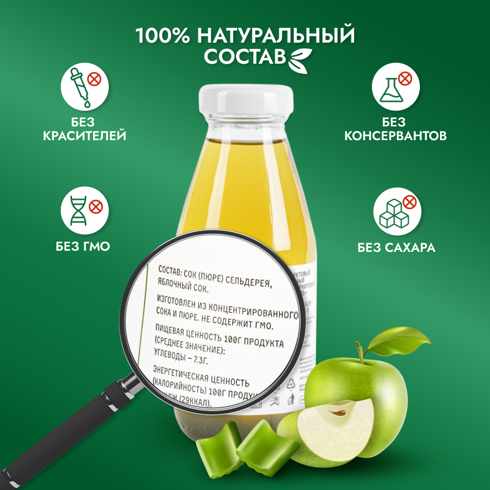Сок детокс 06 натуральный без сахара для похудения без гмо сельдерей-яблоко, 9 шт по 300 мл, 4390 гр интересное: