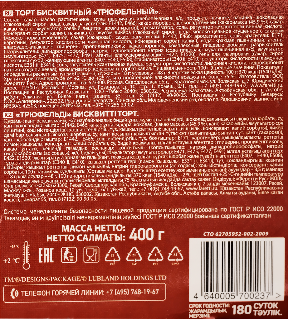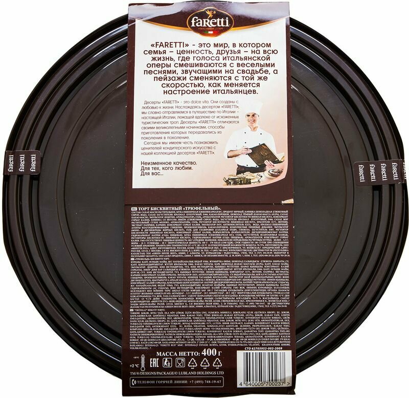 Торт бисквитный FARETTI Трюфельный, 400г интересное: