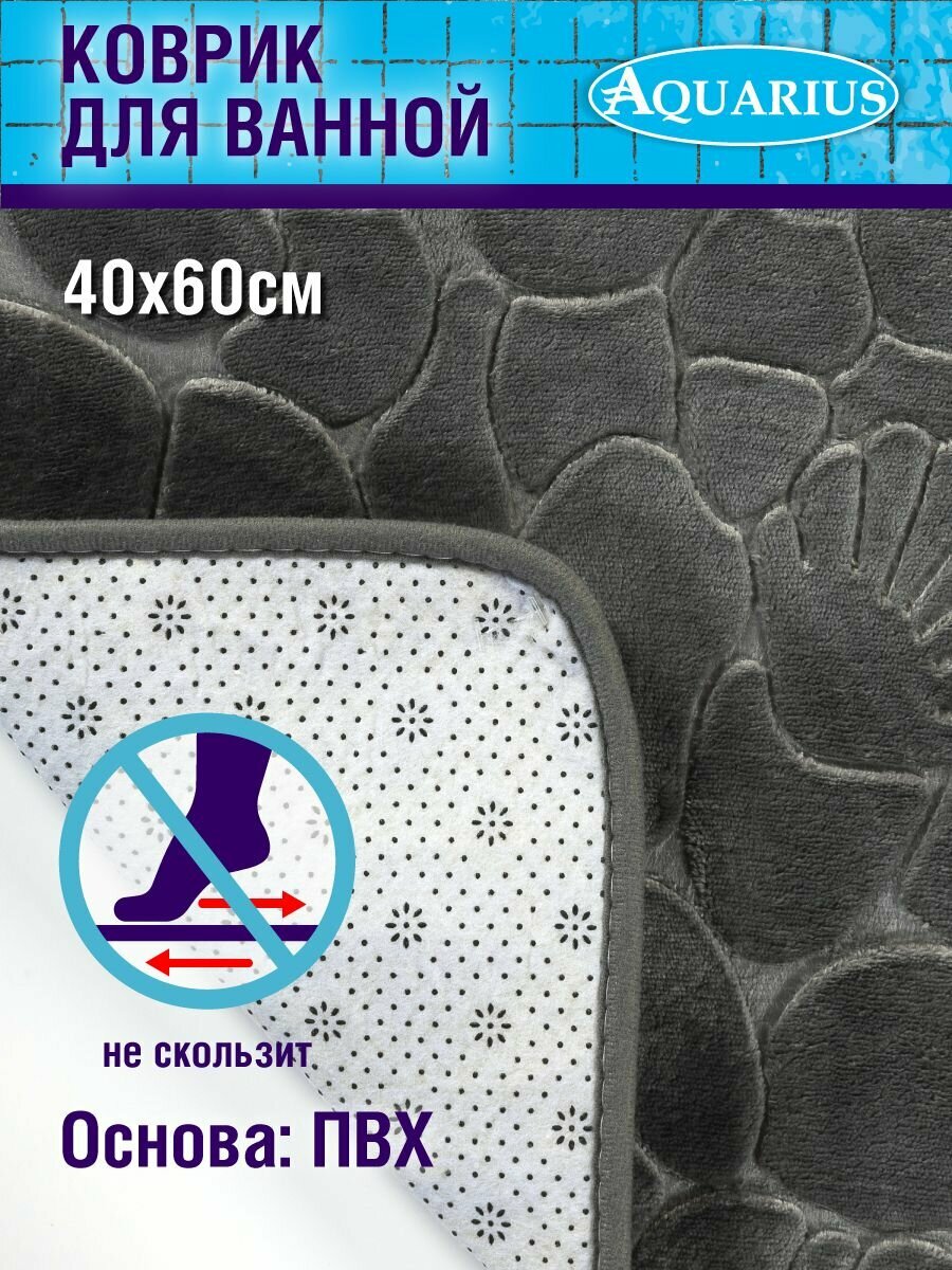 Коврик для ванной комнаты Aquarius Камушки 3D 40х60 см ворсовый серый