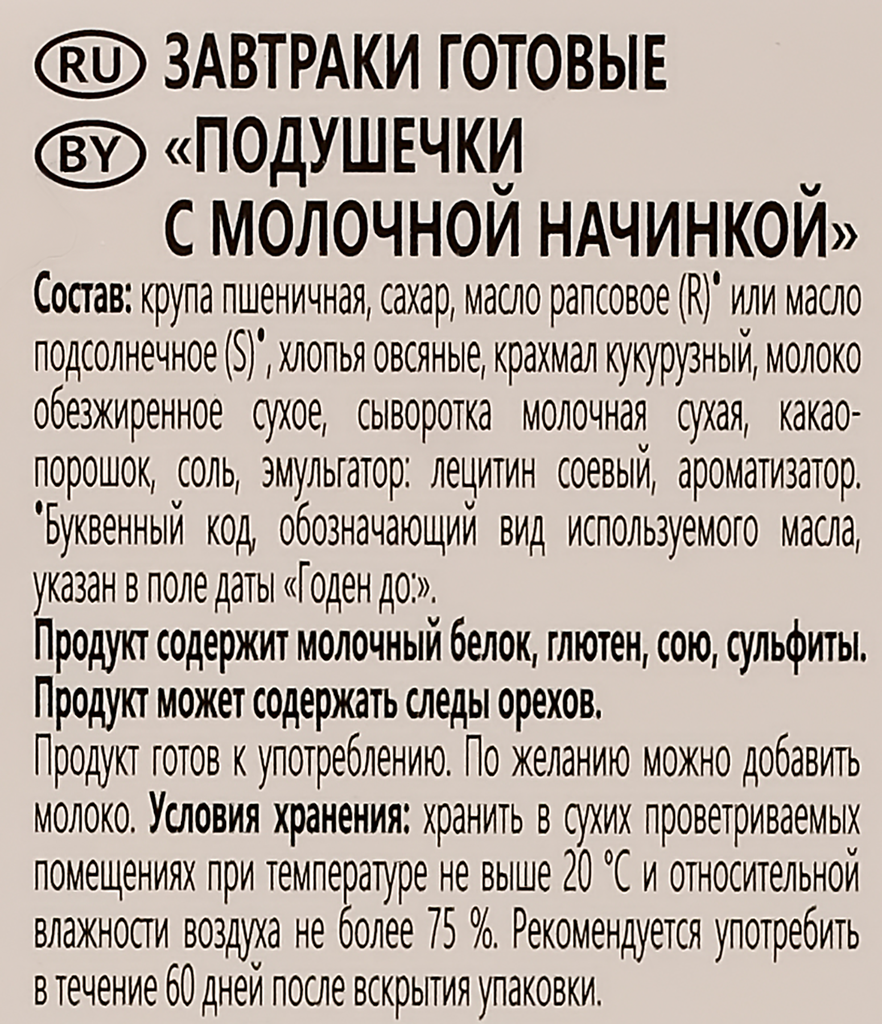 Готовый завтрак любятово Подушечки с молочной начинкой, 220г интересное: