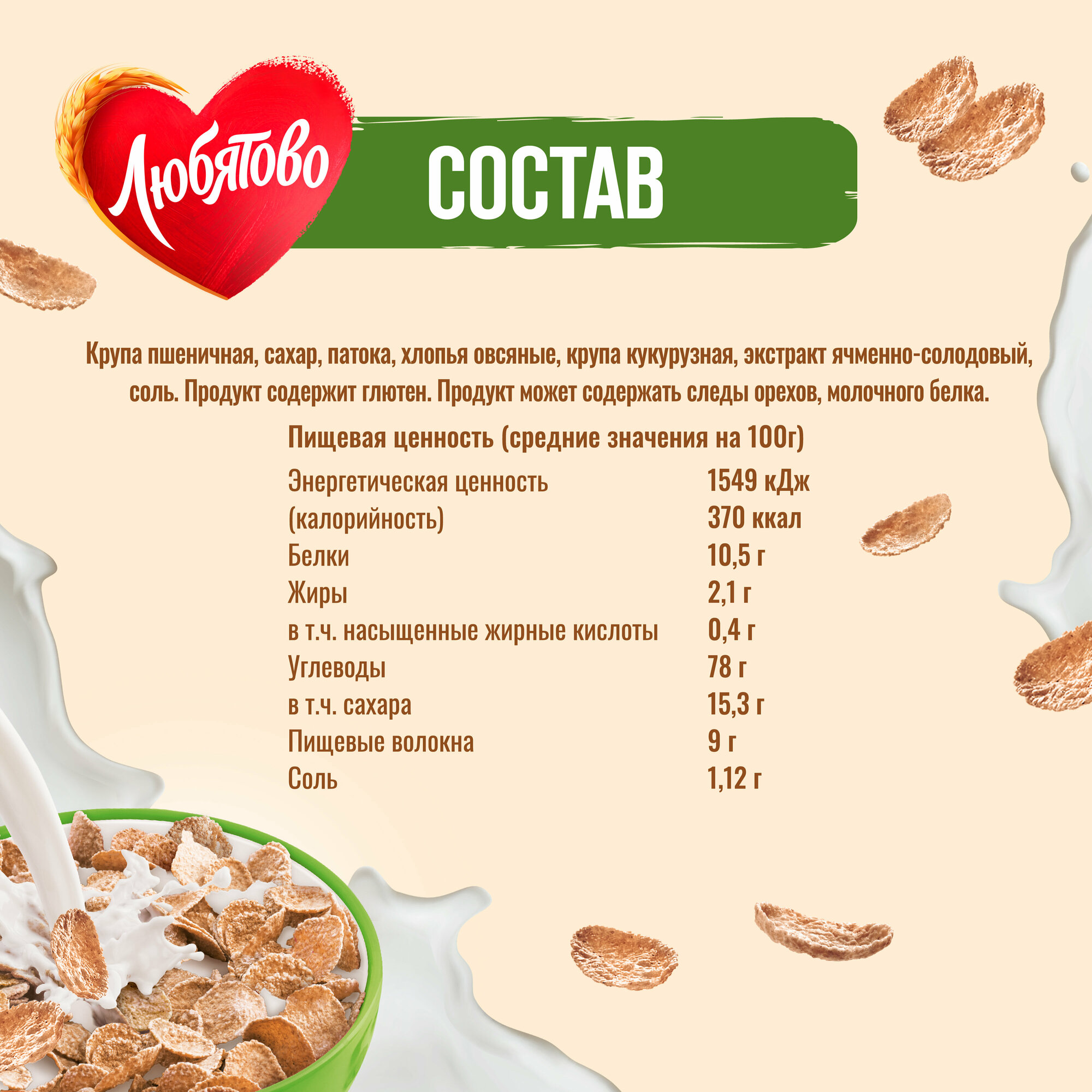 Любятово Готовый завтрак Хлопья зерновые, Мультизлаковые, 250 г, 2 уп