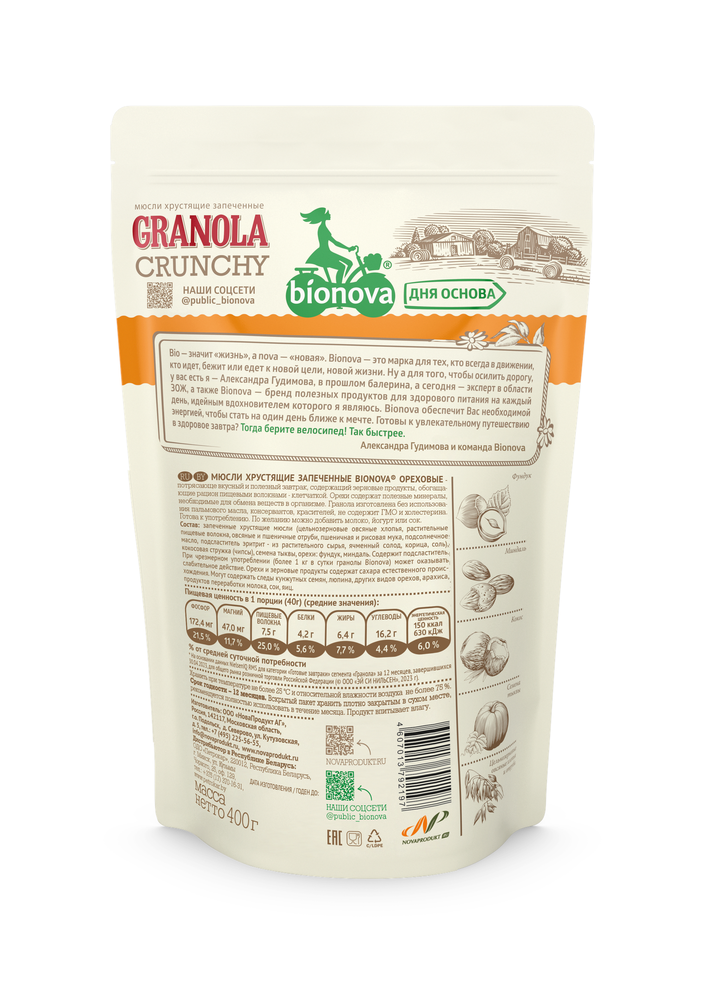Мюсли хрустящие запеченные "Бионова" ореховые, 400 грамм