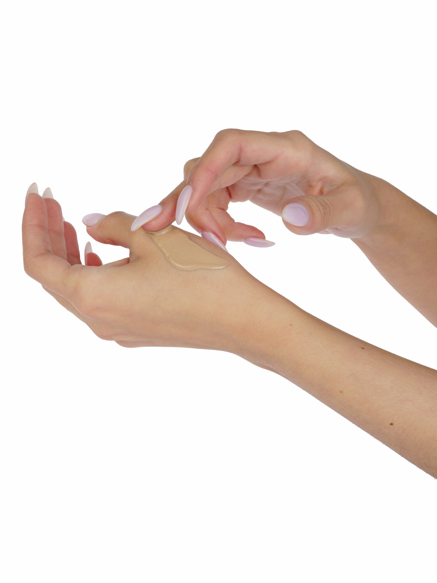 Подстраивается под тон кожи Подходит для светлокожих Не подчеркивает шелушения Большой объем, удобный дозатор |