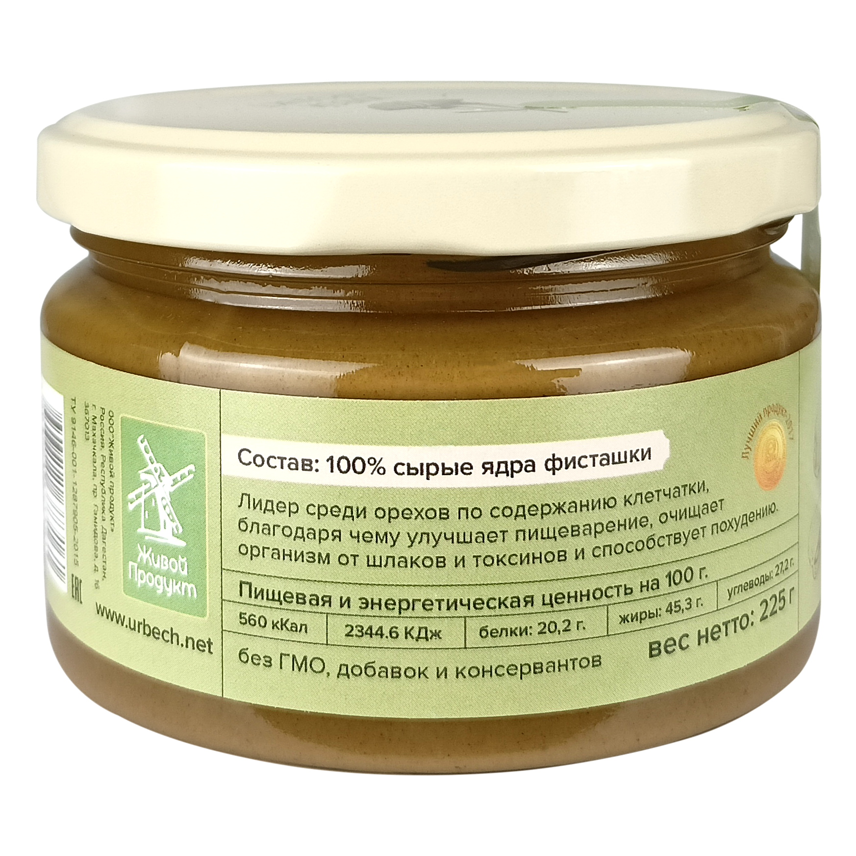 Живой продукт Урбеч из ядер фисташки, 225 г