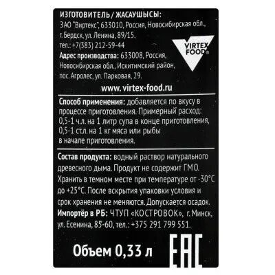 Жидкий дым Костровок, коптильный аромат, 0,33 л 2294102