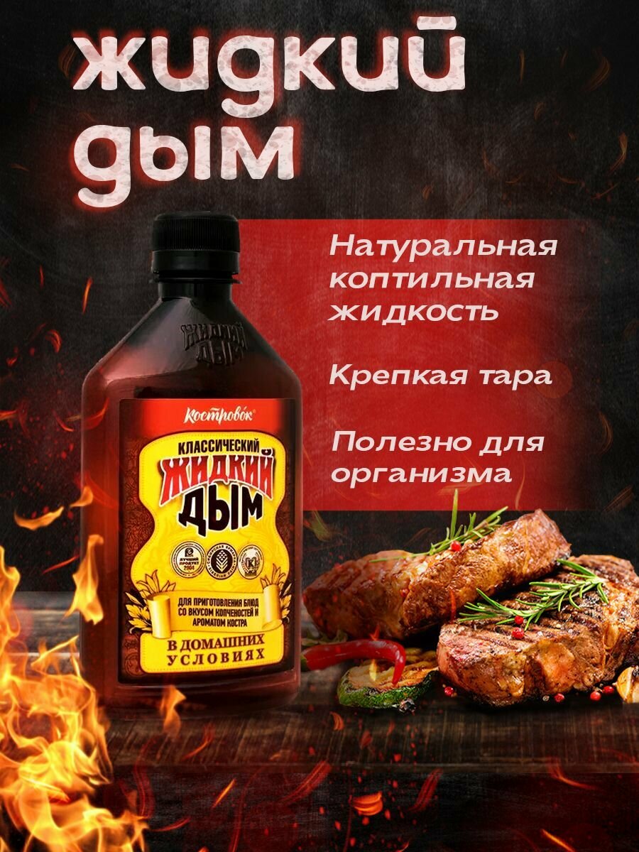Костровок Классический Жидкий дым Для приготовления блюд со вкусом копченостей и ароматом костра в домашних условиях, 0.33л