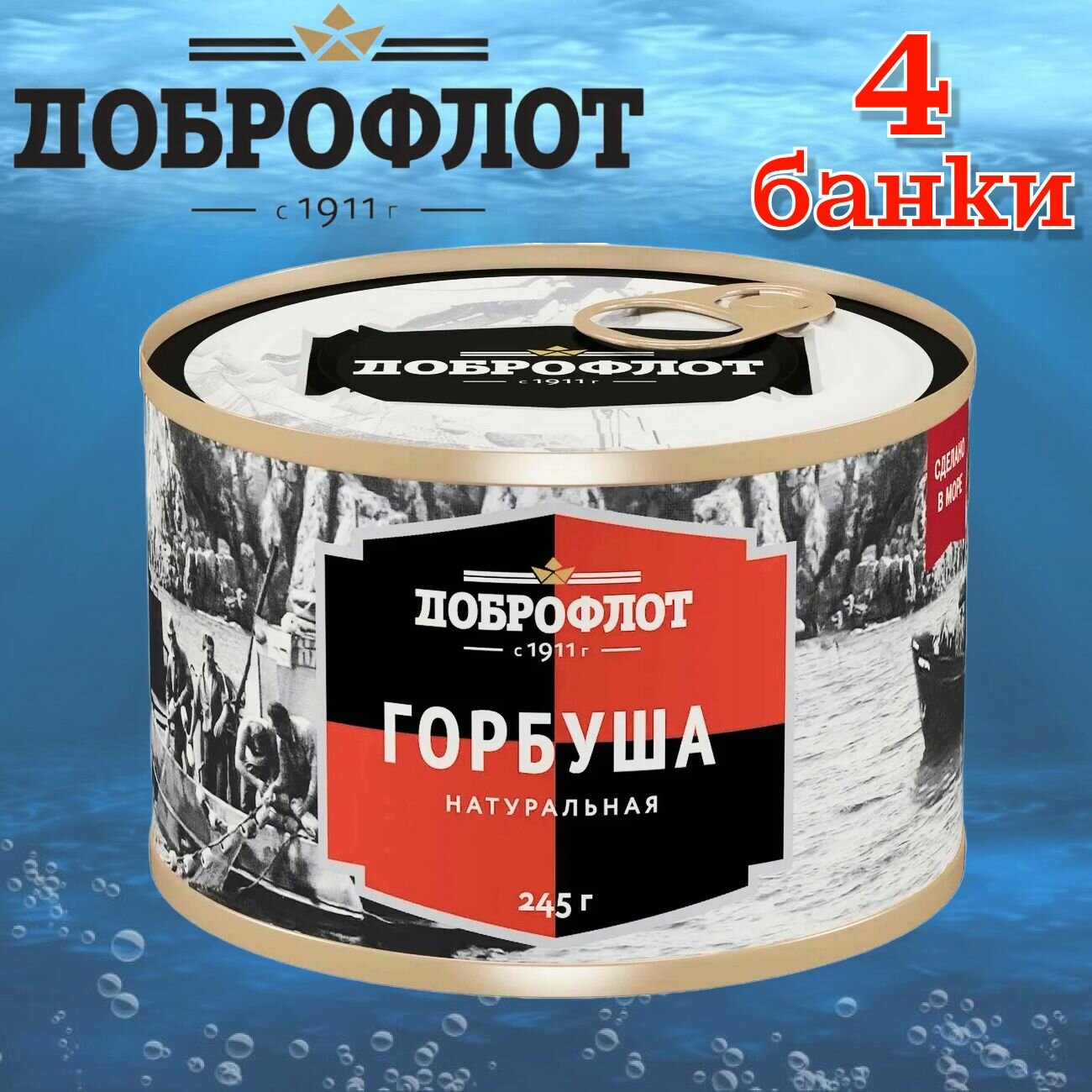 Горбуша натуральная "Доброфлот", 4 банки по 245 грамм.