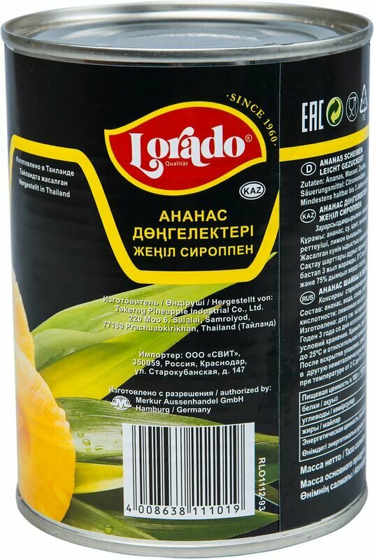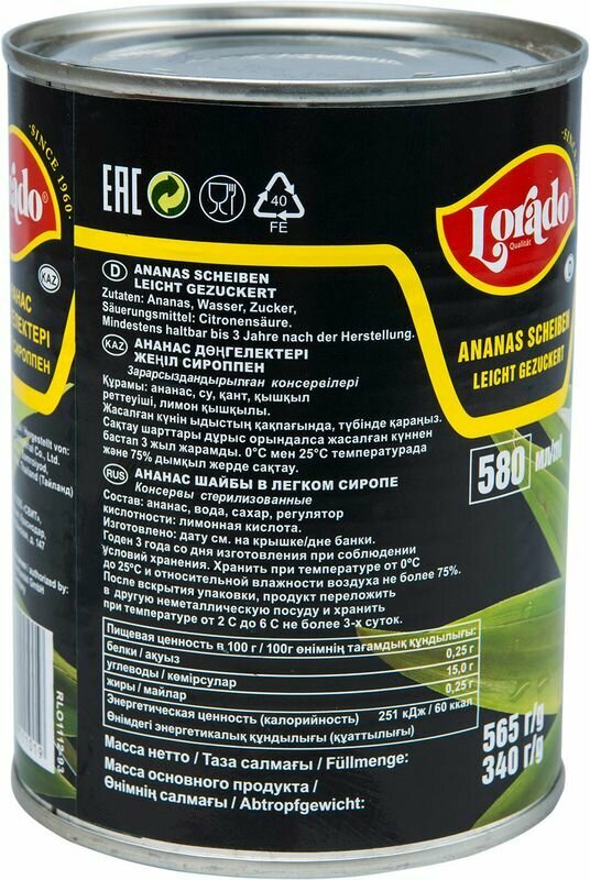 Lorado Ананас шайбы в сиропе ,580 мл