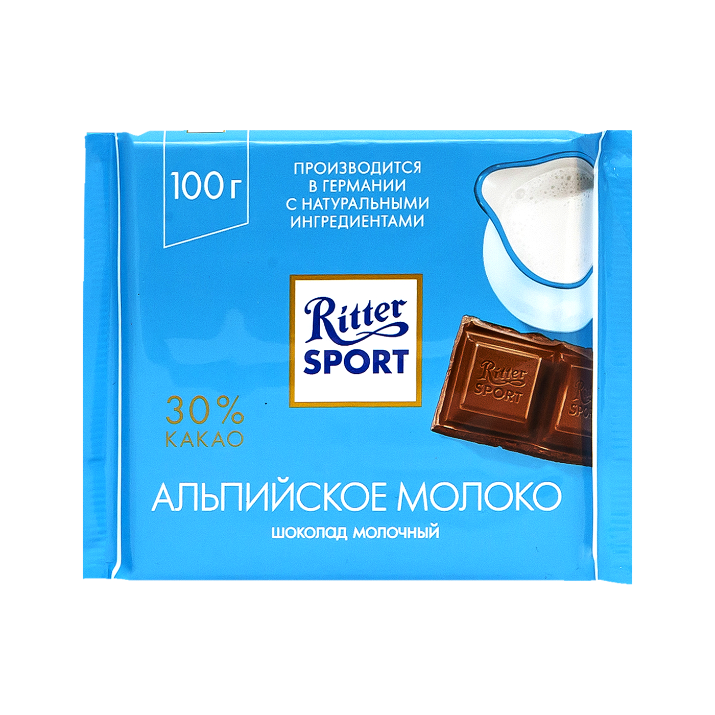 Шоколад молочный RITTER SPORT с альпийским молоком, 100 г