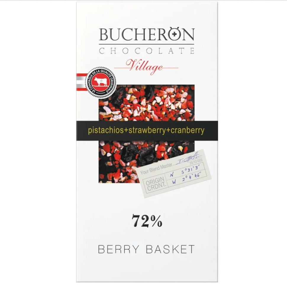 Шоколад Bucheron горький с клюквой, клубникой и фисташками, 100 г
