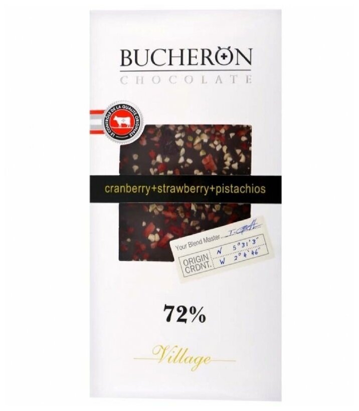 Bucheron Шоколад Village горький с клюквой, клубникой и фисташками, 100 г