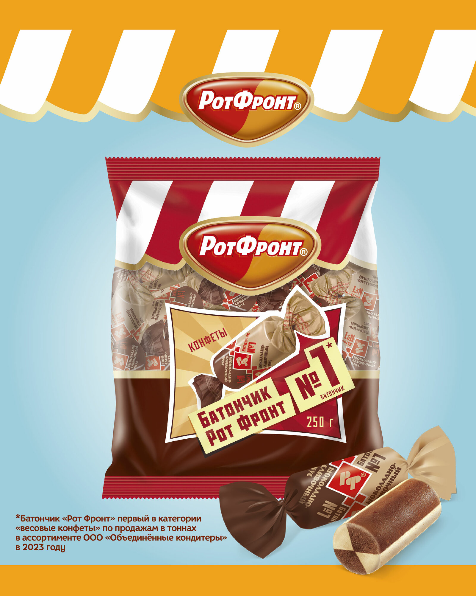 Конфеты "Батончики Рот Фронт" шоколадно-сливочный вкус, 1000г.