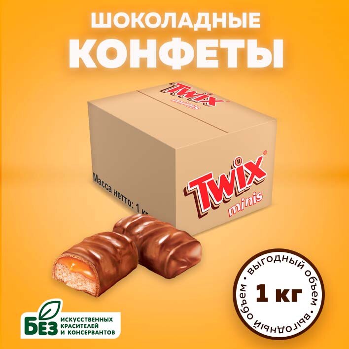 Купить Конфеты шоколадные TWIX minis, весовые, 1 кг, картонная упаковка, 57237