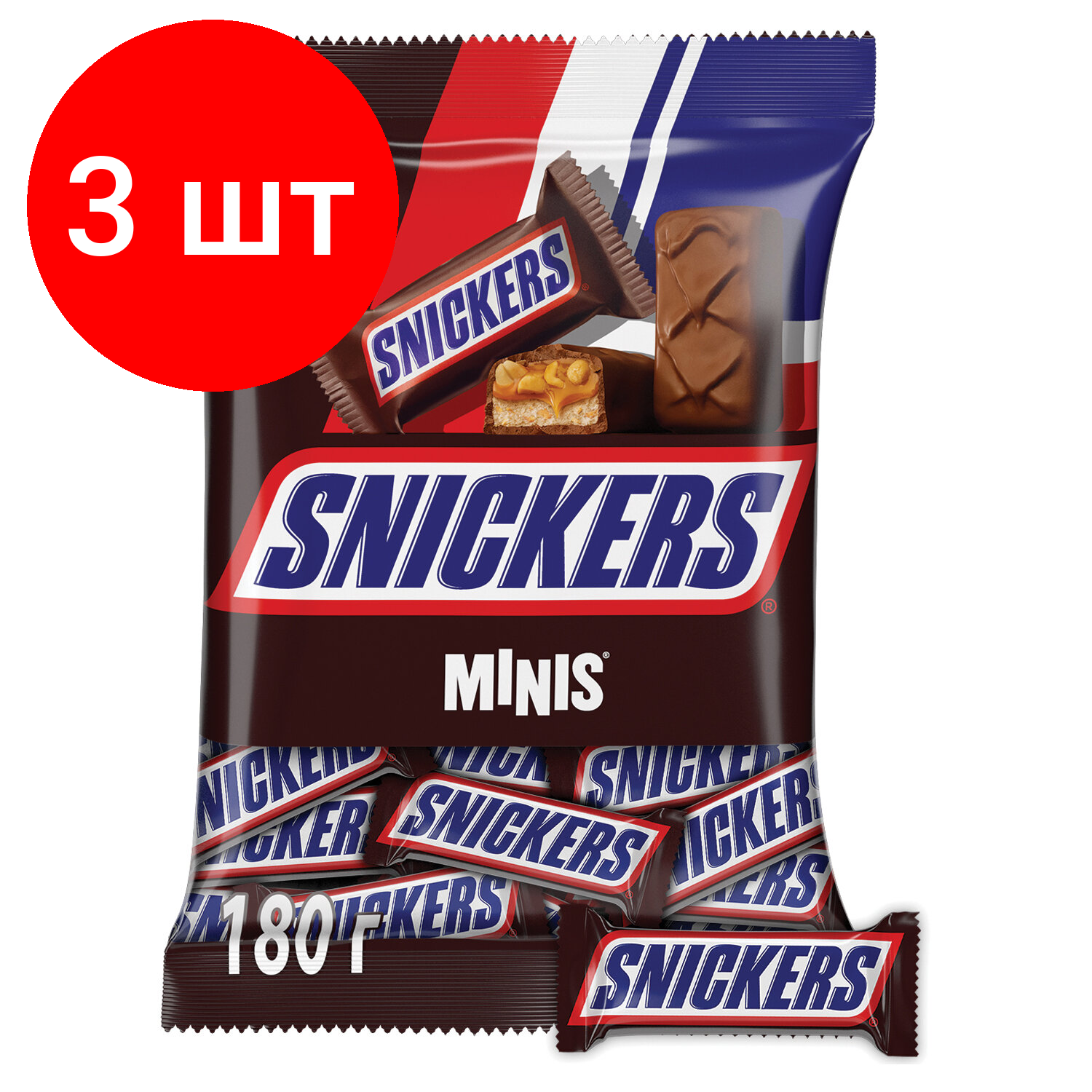 Купить Комплект 3 шт, Шоколадные батончики SNICKERS "Minis", 180 г, 2264