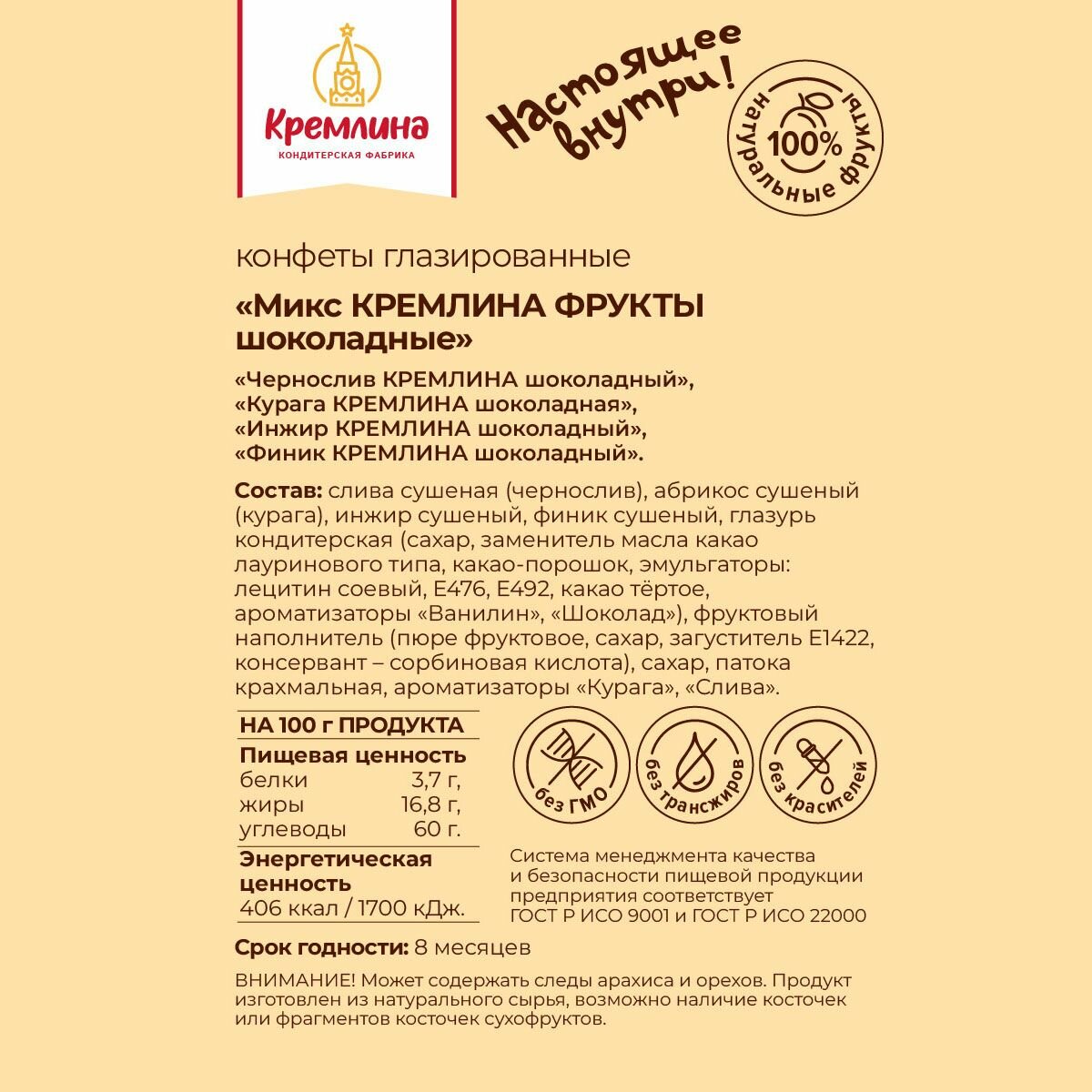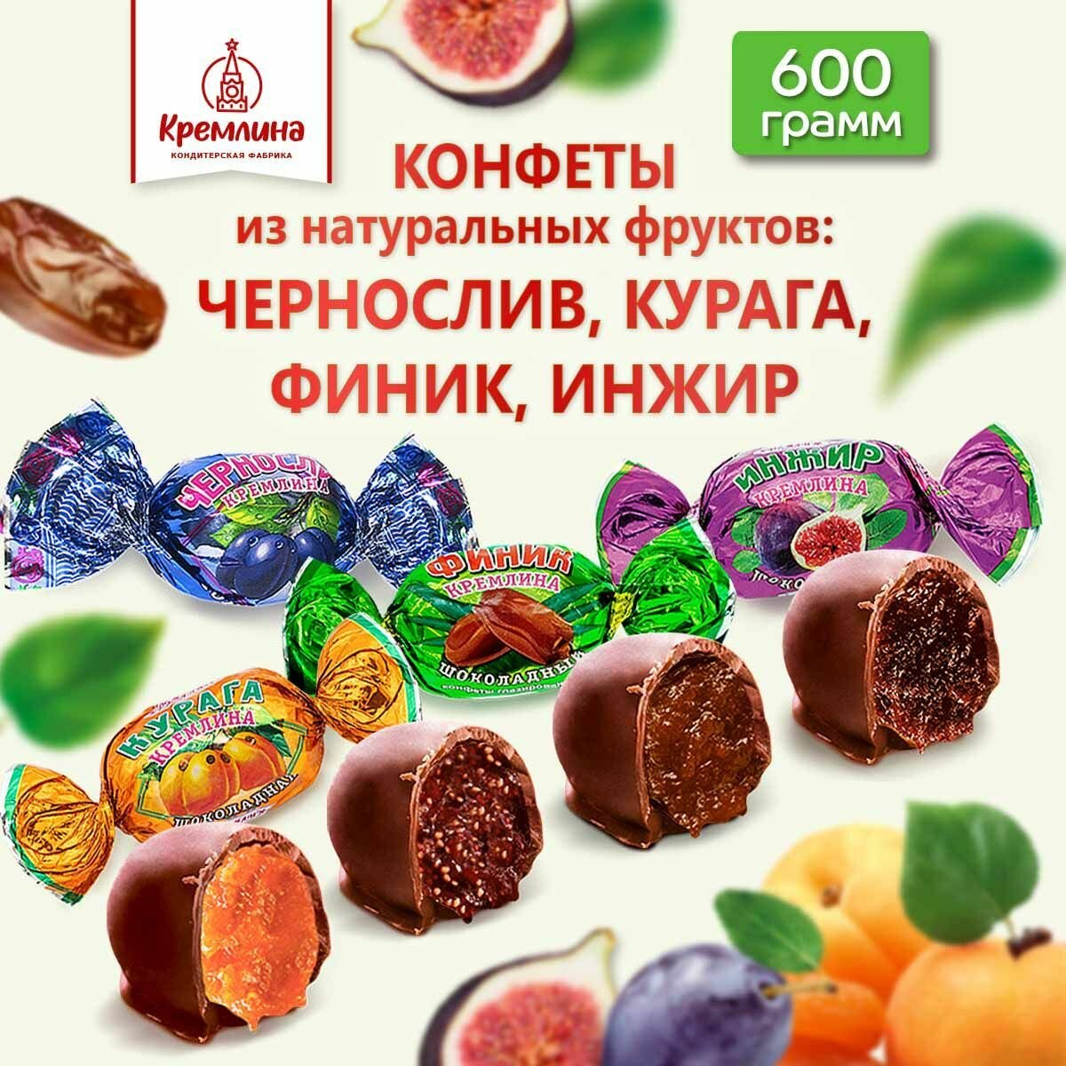 Кремлина Конфеты микс фрукты шоколадные (Ассорти конфет Чернослив, Курага, Финик и Инжир), 1 кг