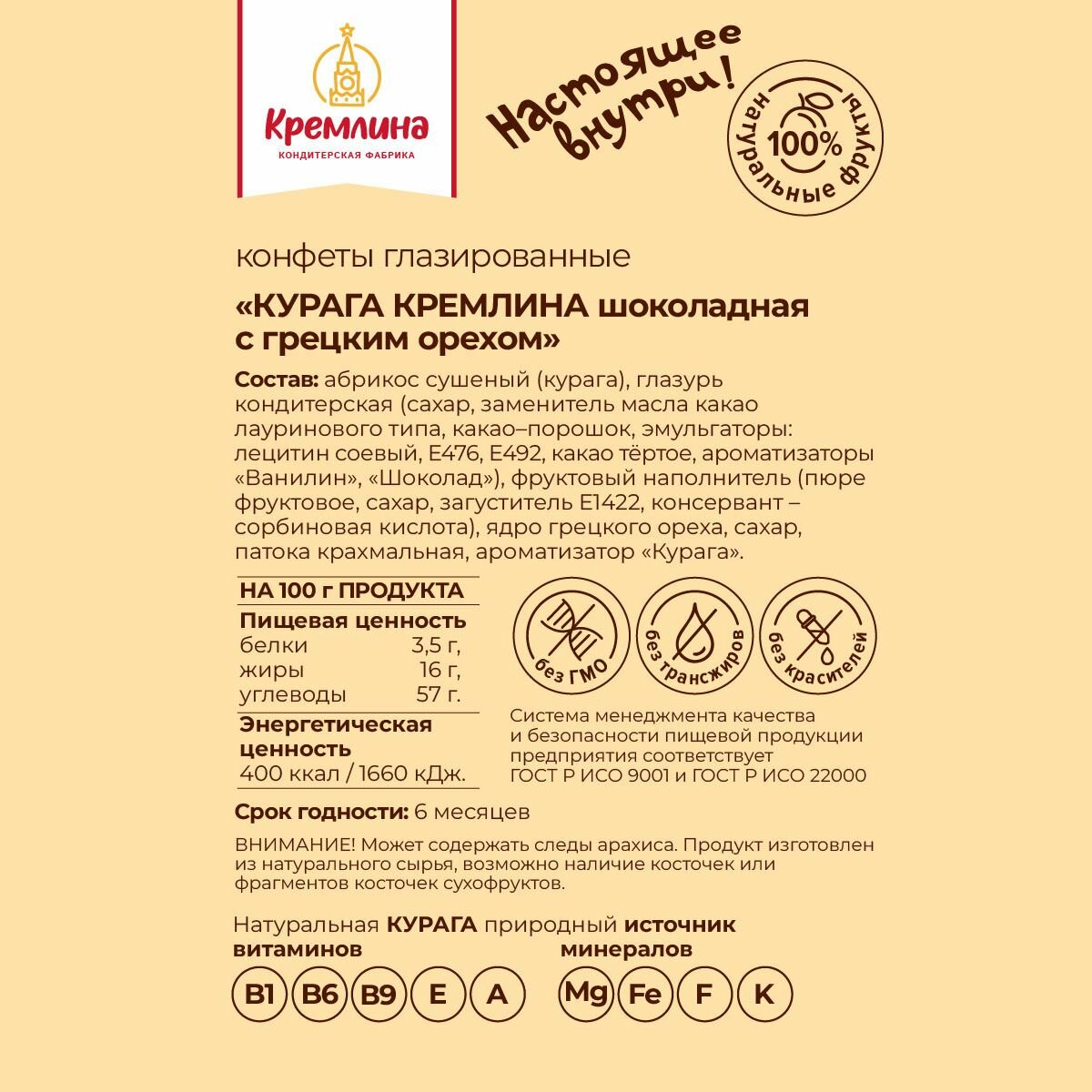 Конфеты "Курага Кремлина шоколадная с грецким орехом", п/п 600 гр